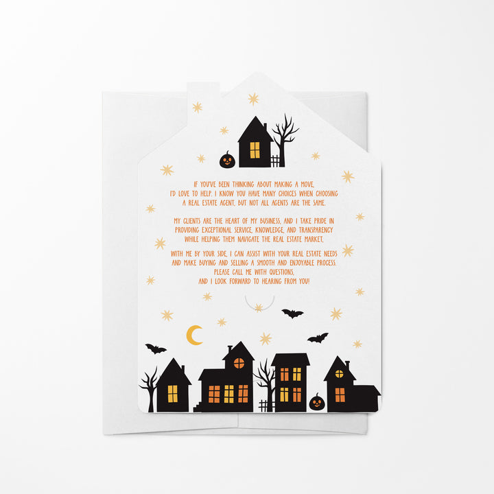 Have your potential clients thinking about what neighborhood they would like to go trick-or-treating in this year! Let everyone know you're the perfect person to get them there! Send these creative Halloween mailers to homes in your target market. You can even slide your business card in the slots provided, so the homeowner can call you when they need a real estate agent! White envelopes included.