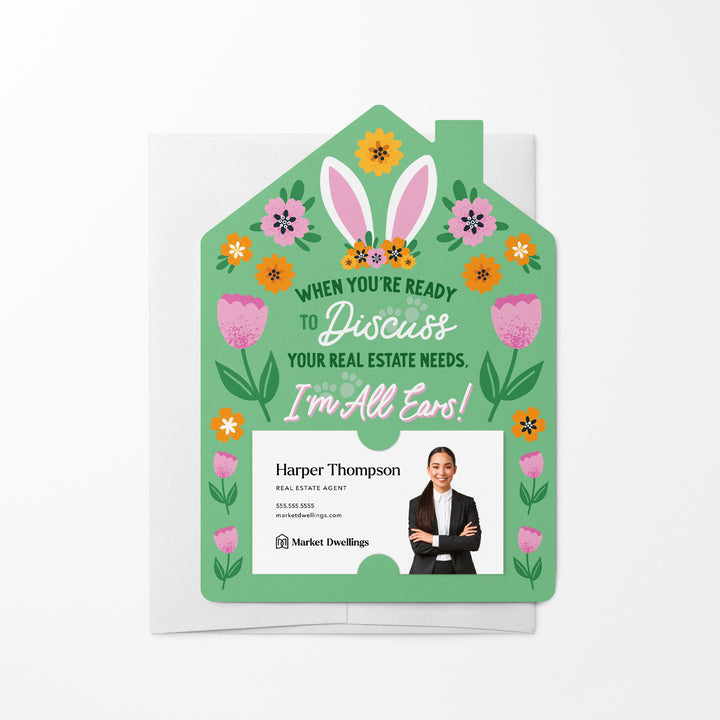 Set of When You're Ready To Discuss Your Real Estate Needs, I'm All Ears! Mailers | Spring Easter | Envelopes Included | M127-M001