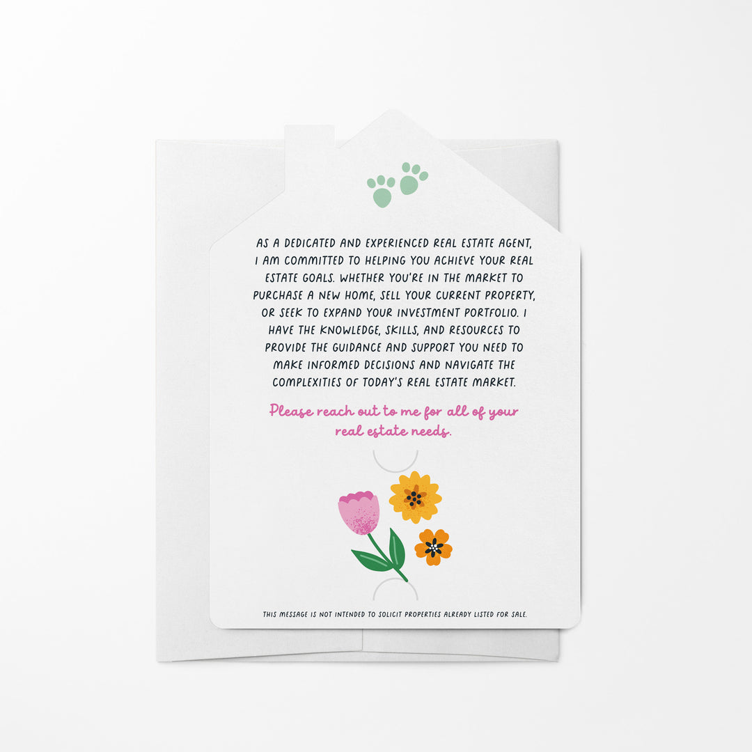 Send these fun pop-of-color mailers to homes in your target market. You can even slide your business card in the slots provided, so the homeowner can call you when they need a real estate agent! White envelopes included.
