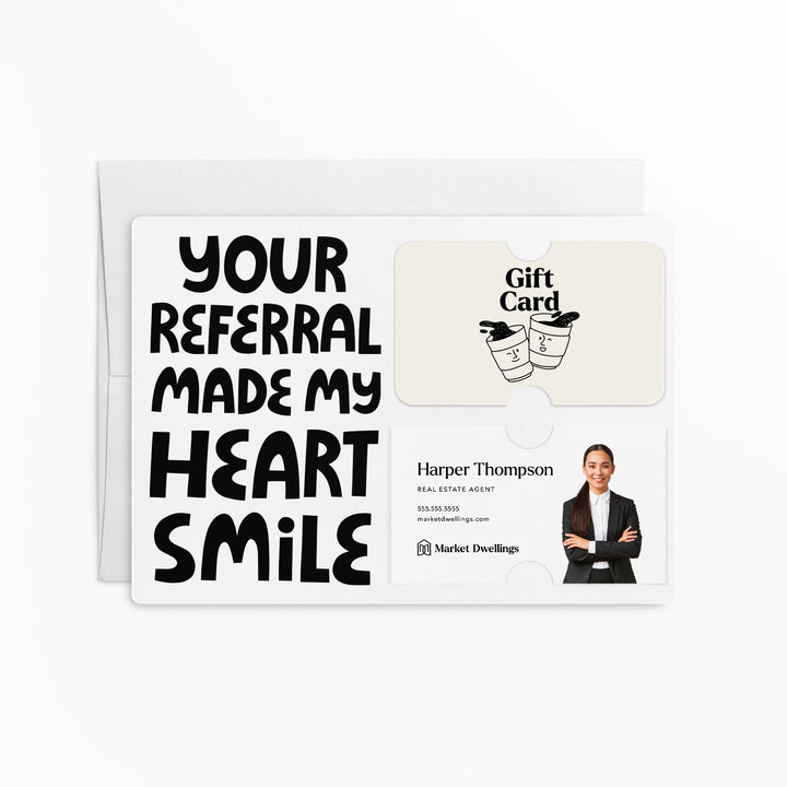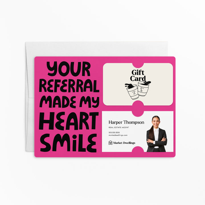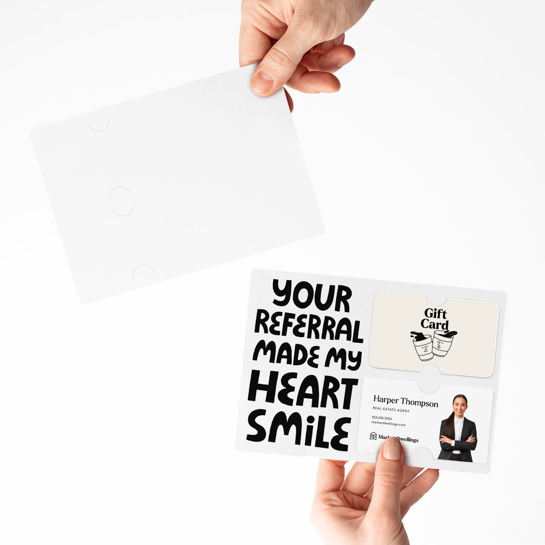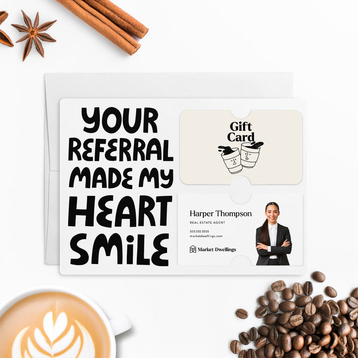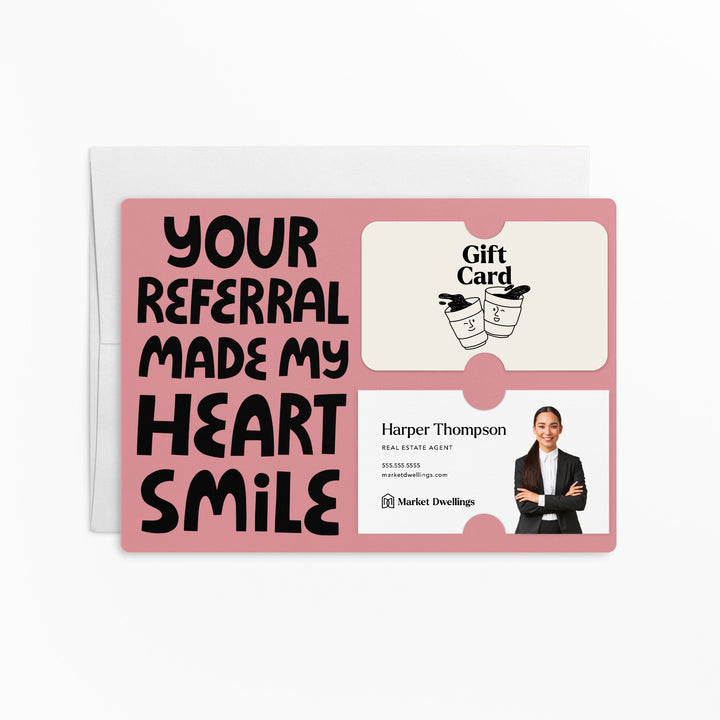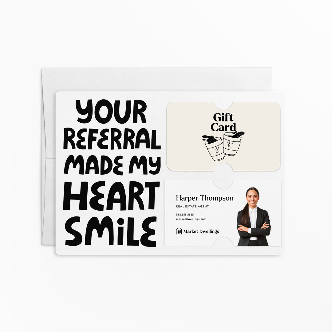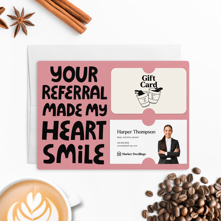 SET of Your Referral Made My Heart Smile Gift Card & Business Card Holders w/Envelopes | Real Estate Mortgage | Coffee Card | M51-M008
