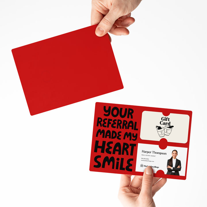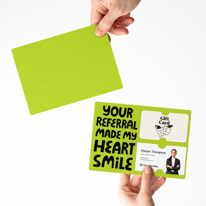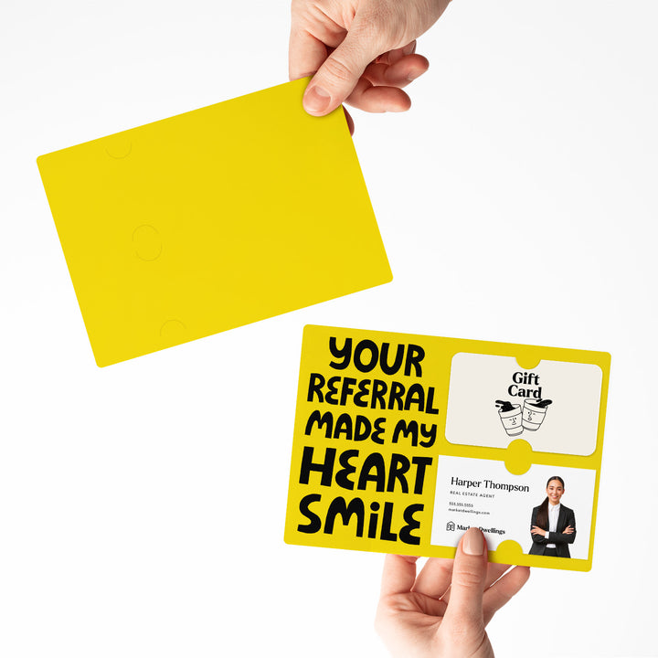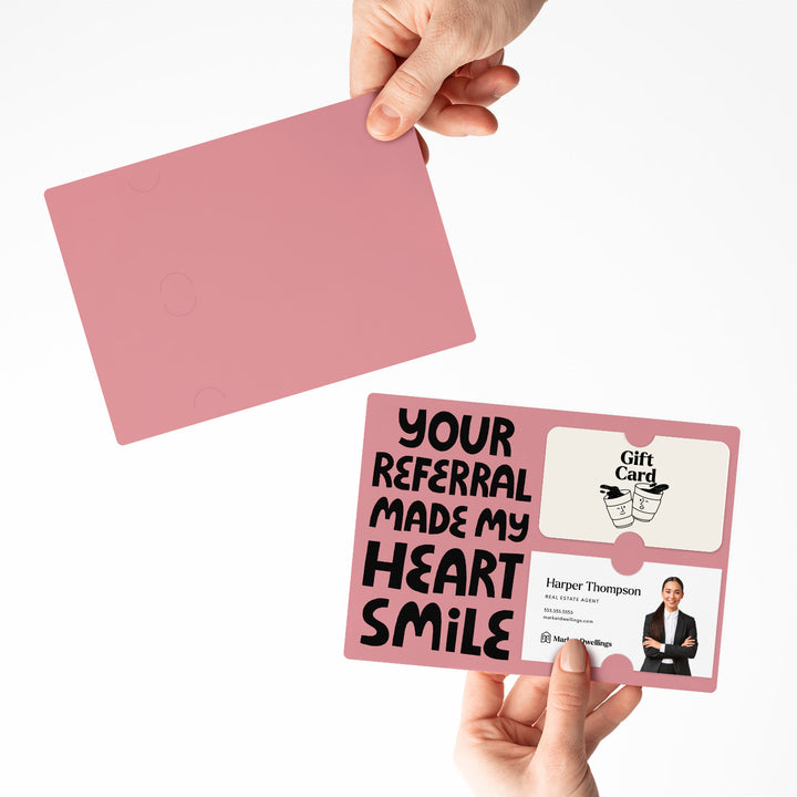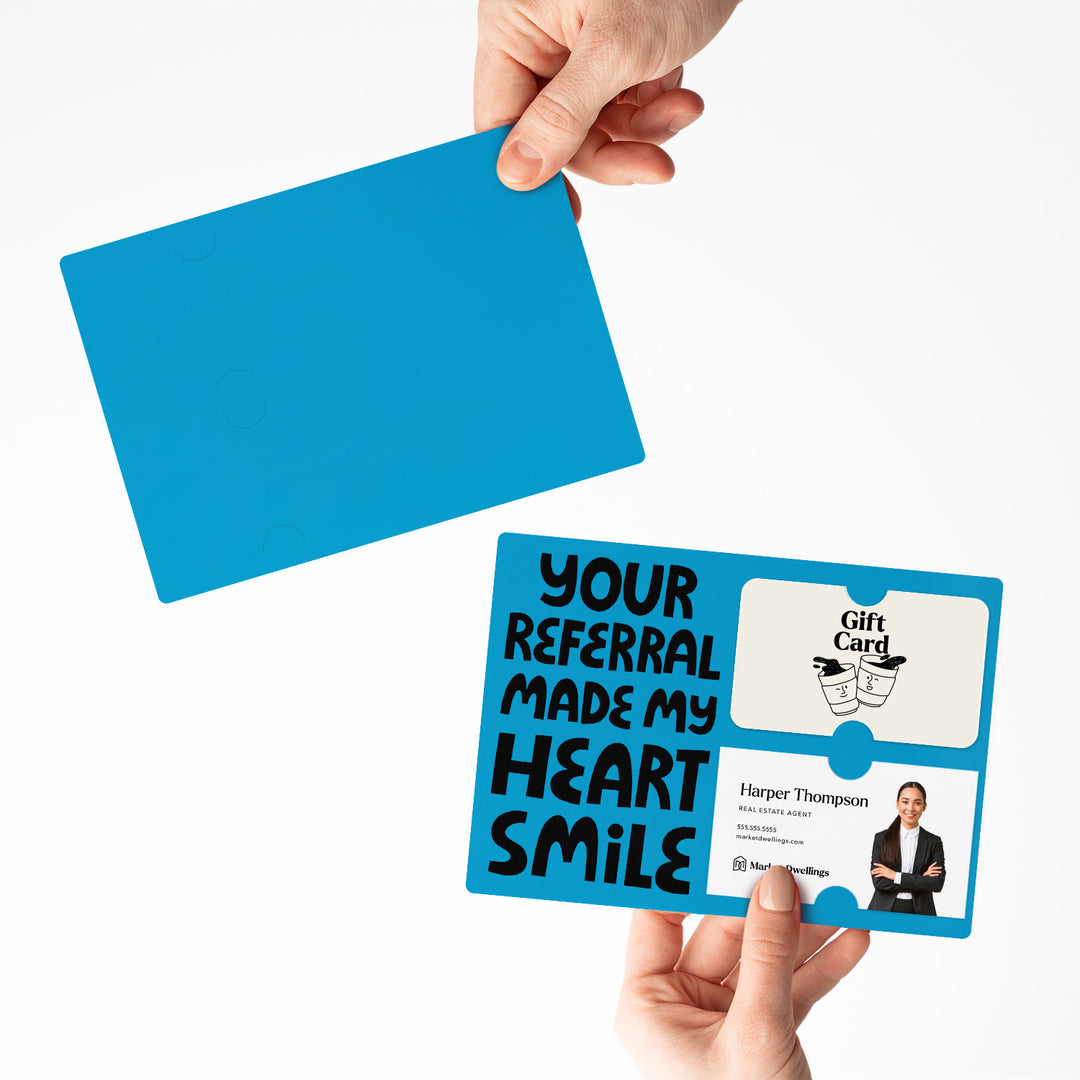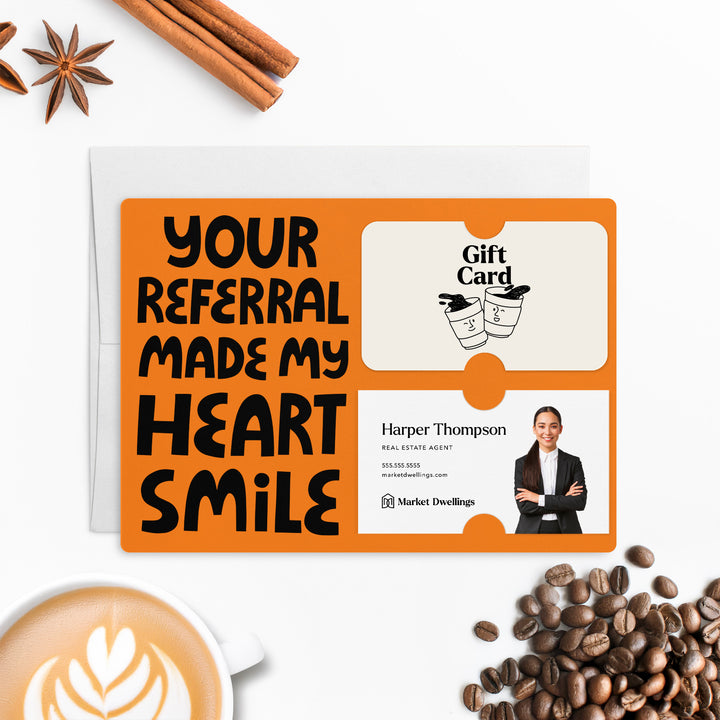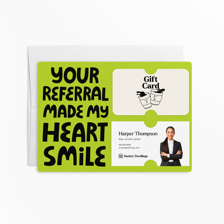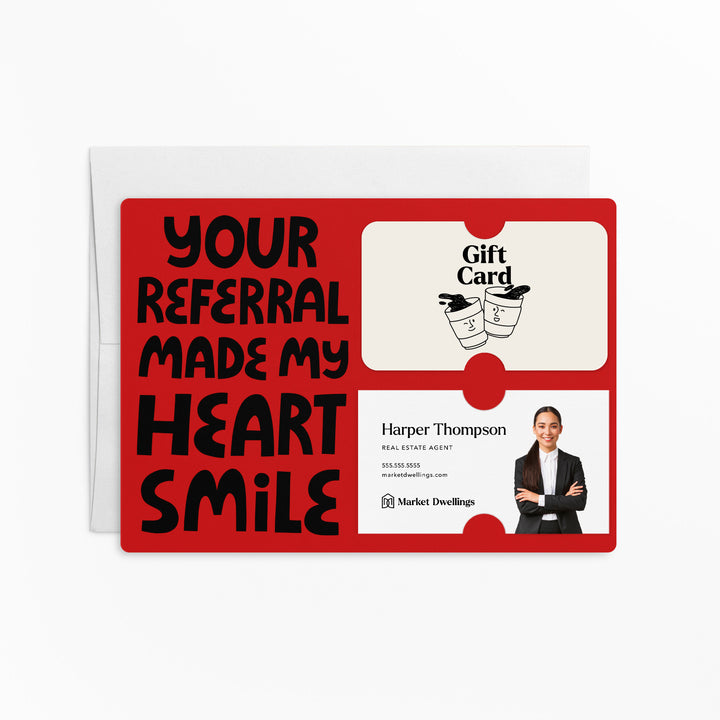 SET of Your Referral Made My Heart Smile Gift Card & Business Card Holders w/Envelopes | Real Estate Mortgage | Coffee Card | M51-M008