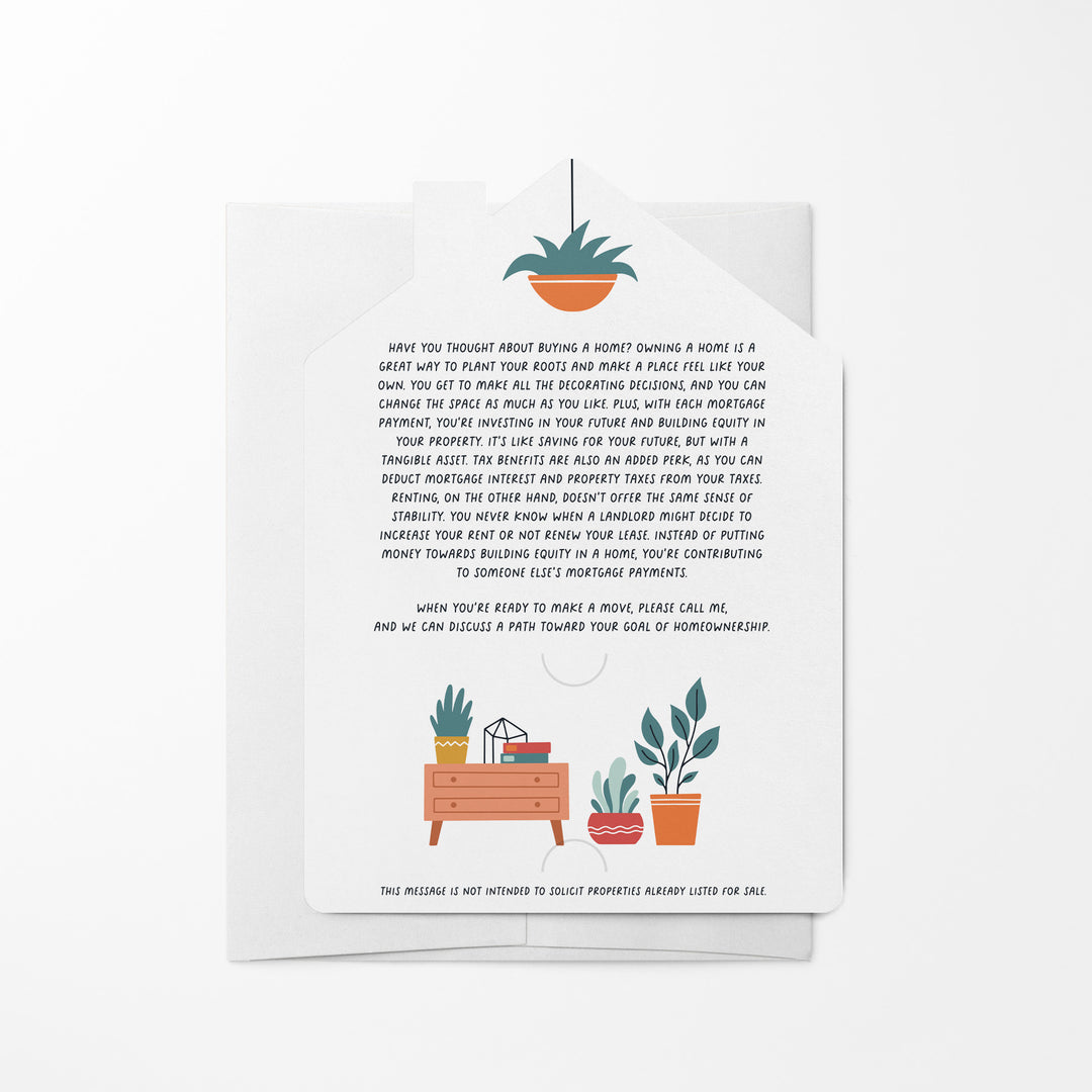 Send these adorable mailers to renters in your target market. You can even slide your business card in the slots provided, so the homeowner can call you when they need a real estate agent! White envelopes included.