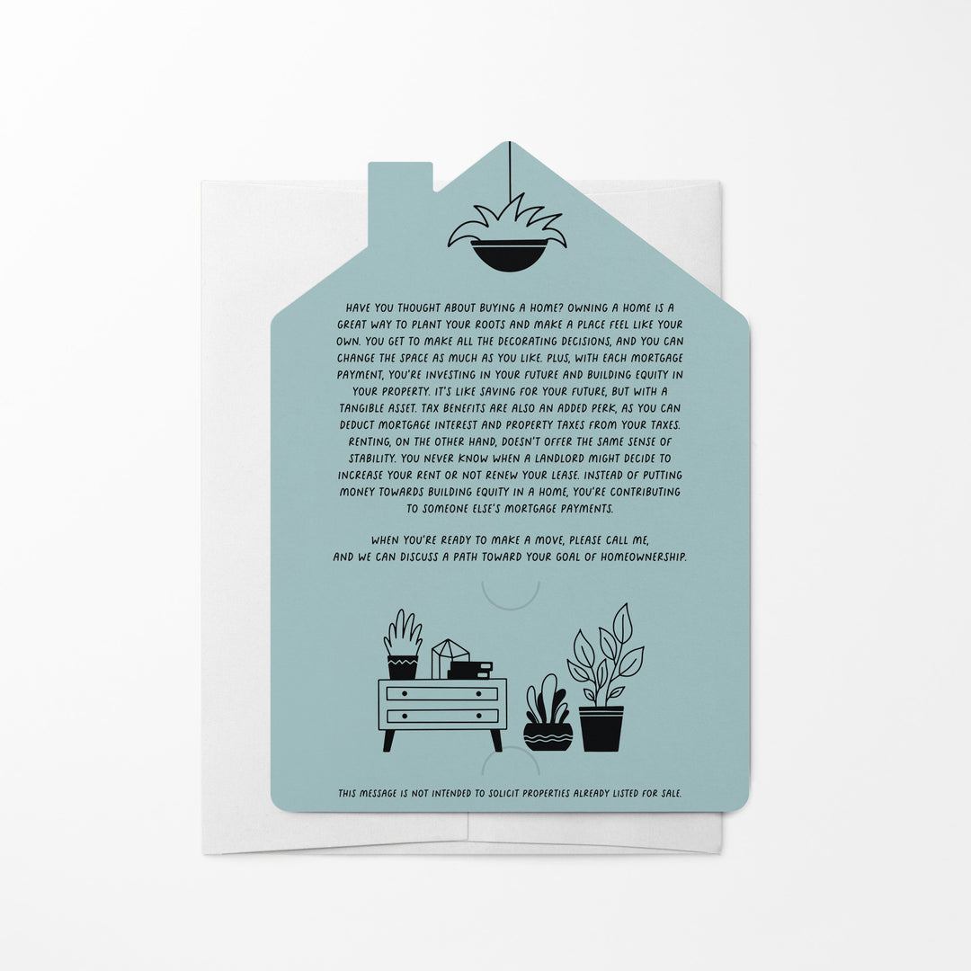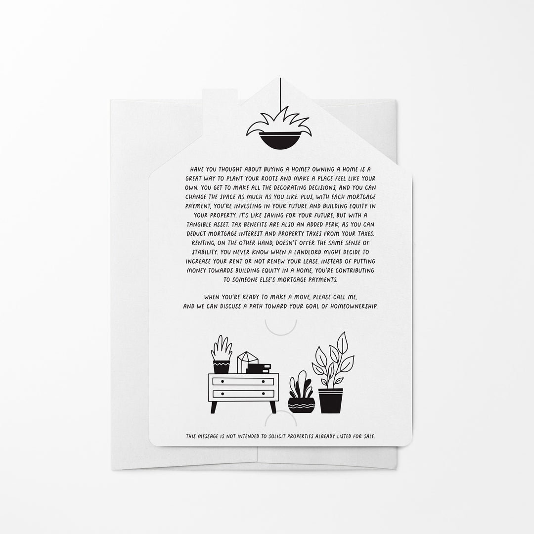 Send these adorable mailers to renters in your target market. You can even slide your business card in the slots provided, so the homeowner can call you when they need a real estate agent! White envelopes included.