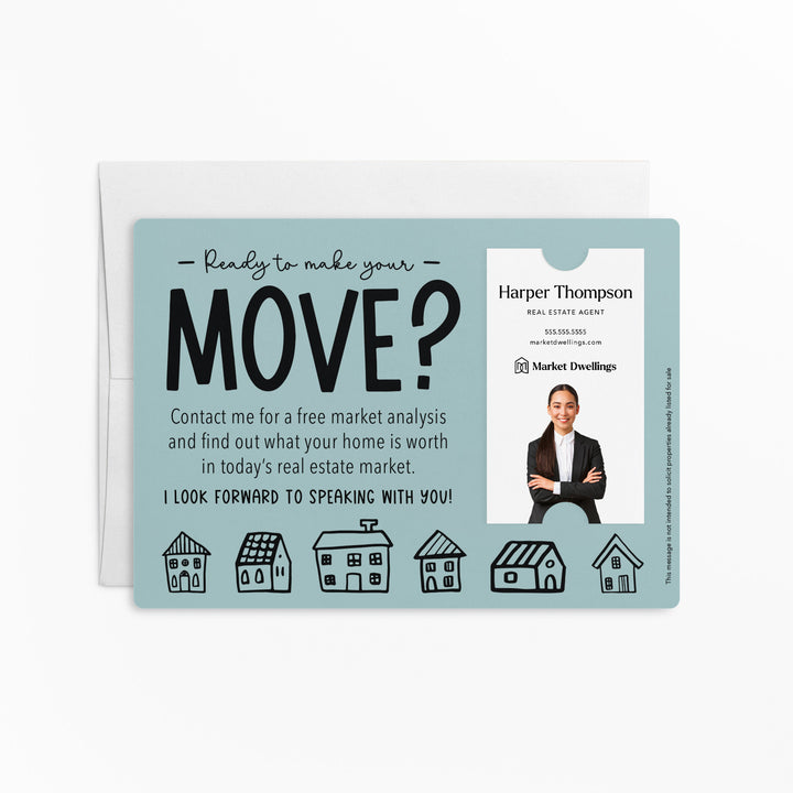 Vertical | SET of Ready to Make Your Move Mailer w/Envelopes | Real Estate Agent Marketing | Insert your business card | Mailable | M16-M005
