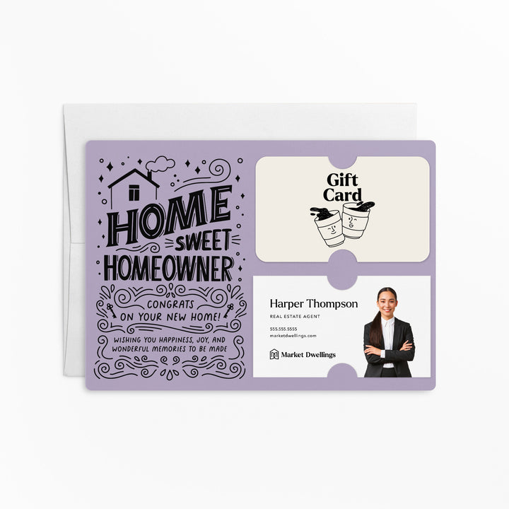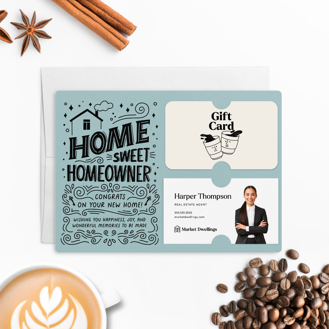 Home Sweet Homeowner Gift Card and Business Card Holder | Greeting Card with Envelope | Real Estate Agent Marketing | Promote Business | M70-M008
