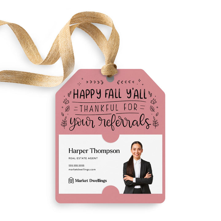 As real estate professionals, building strong client relationships is key to growing your business. That's why we've created the perfect pop by gift tags for the fall season - Happy Fall Y'all! These tags are more than just a sweet seasonal gesture, they are a thoughtful and professional way to show your clients that you value their partnership. Each tag features a slot to hold your business card, ensuring that your contact information stays top of mind for your clients. With these gift tags, you'll not only spread joy and cheer this autumn, but also nurture important connections with your clients. Order now and make this fall a happy one for you and your business!