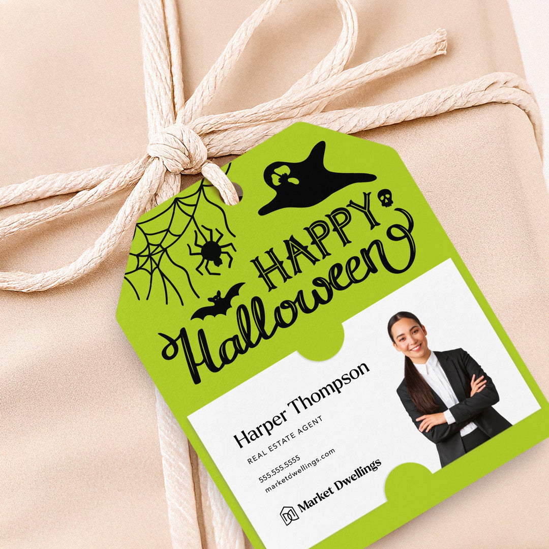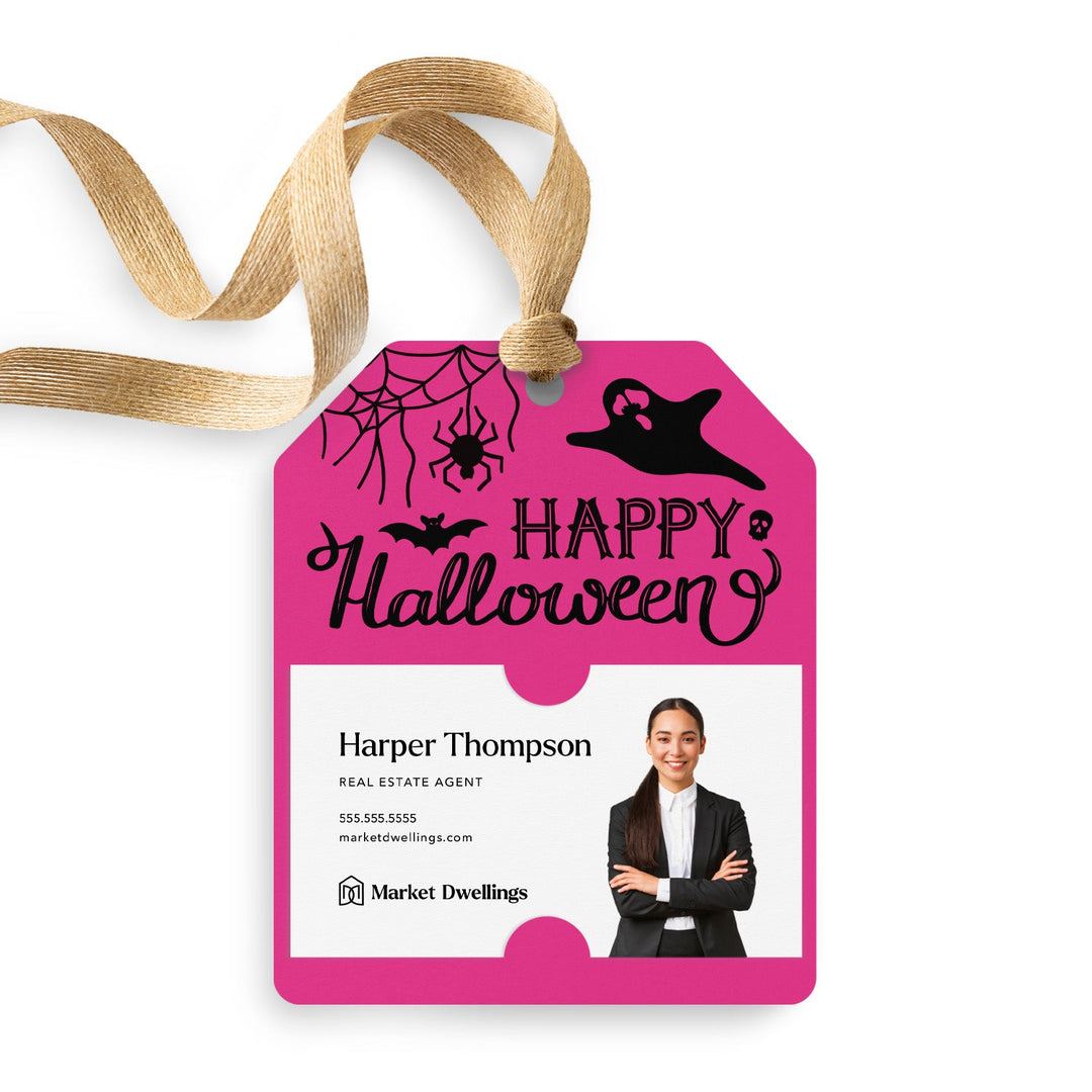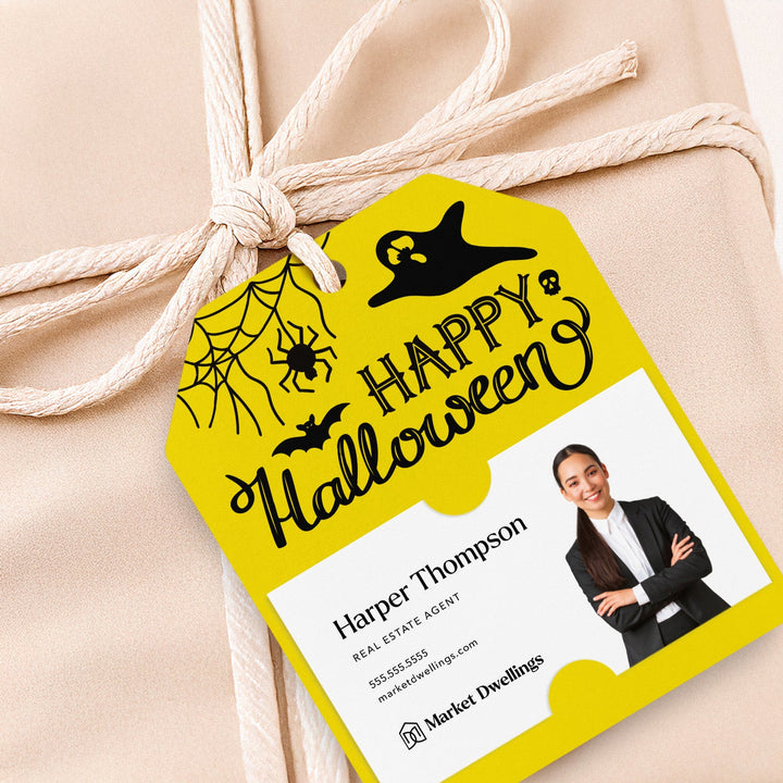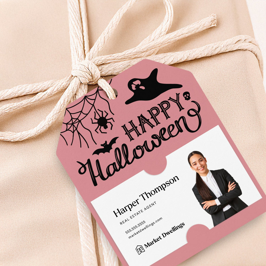 Looking for a creative and effective way to stand out in the competitive world of real estate? Look no further than our Happy Halloween Pop By Gift Tags! As a real estate agent, it's important to not only attract new clients but also maintain strong relationships with existing ones. These gift tags are the perfect way to do just that, with their thoughtful and professional design. Each tag features a slot to hold your business card, making it easy to leave a lasting impression with potential clients. Show your clients some love this Halloween season with our Pop By Gift Tags and watch your business grow.