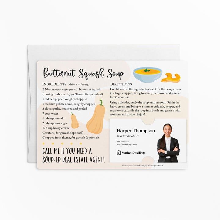 Set of Butternut Squash Soup Real Estate Recipe Cards | Envelopes Included M61-M003