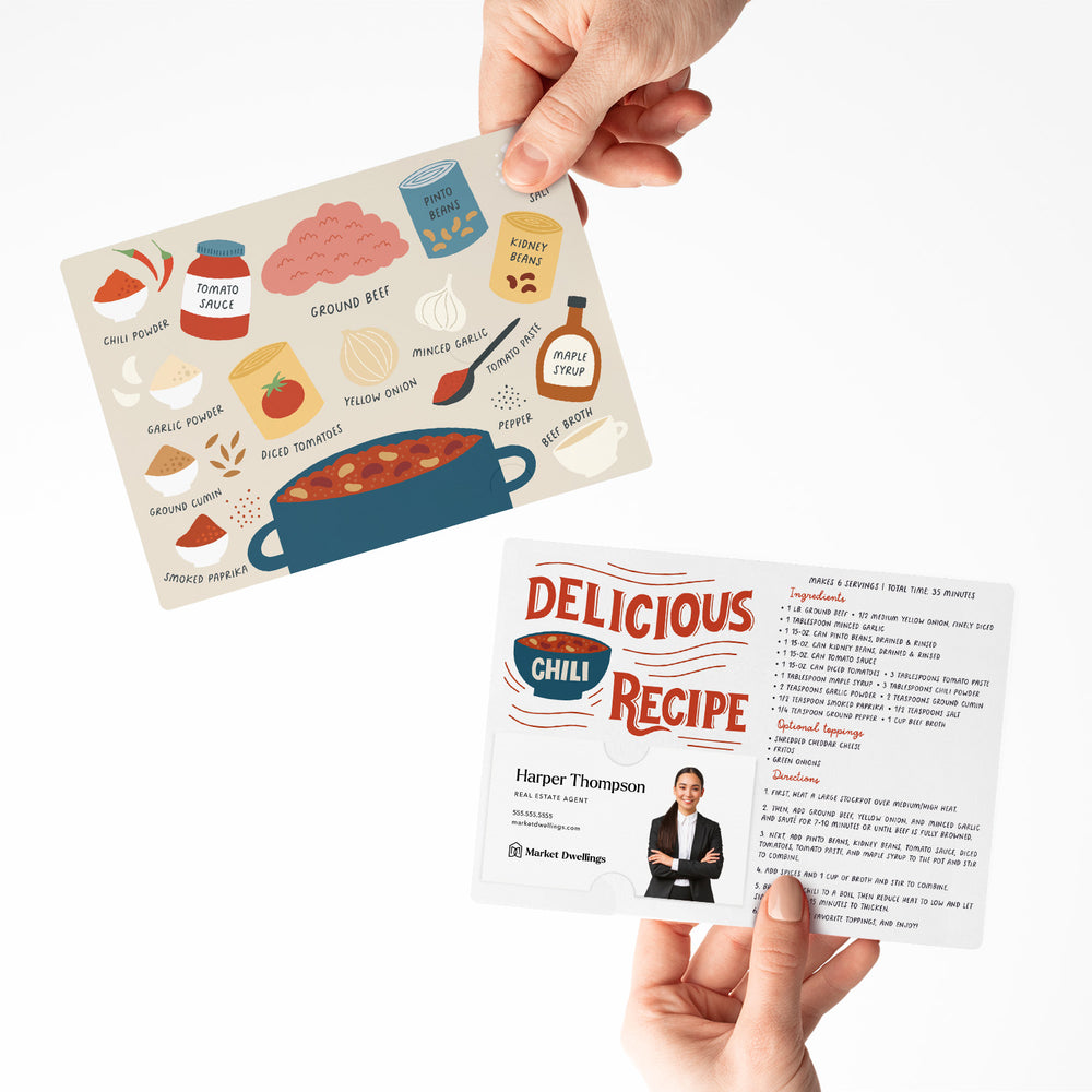 Set of Delicious Chili Recipe | Insurance Mortgage Real Estate Mailers | Envelopes Included | M25-M004