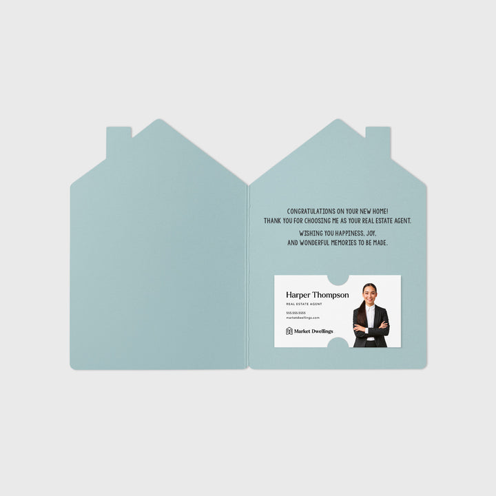 Give your clients a handmade card on the closing day of their home purchase! These cards have a pre-written message inside. Cards also have slots for you to slide your business card in.
