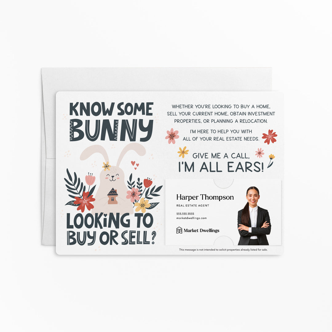 Set of "Know Some Bunny Looking to Buy or Sell?" Double Sided Mailers | Envelopes Included | Real Estate Mailer | Spring Easter | E3-M003