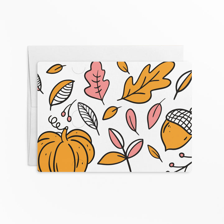 Here's a warm and fuzzy mailer for your clients this Fall. Whether you're a real estate agent, mortgage loan officer, insurance agent, or just want to let your clients know you appreciate their referrals. This card is excellent for that. Slide in a gift card on the top slots to your favorite coffee shop, then slide in your business card in the bottom slots.