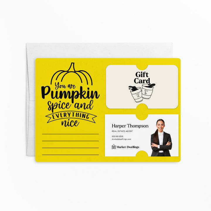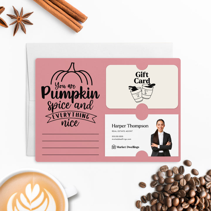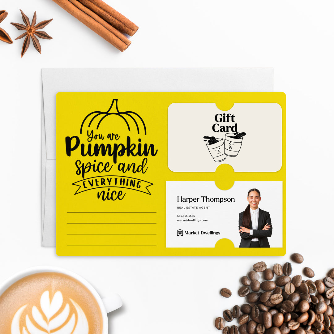 SET of You Are Pumpkin Spice Gift Card & Business Card Holder Mailers w/Envelopes | Coffee Client Gift Marketing | Fall | M38-M008
