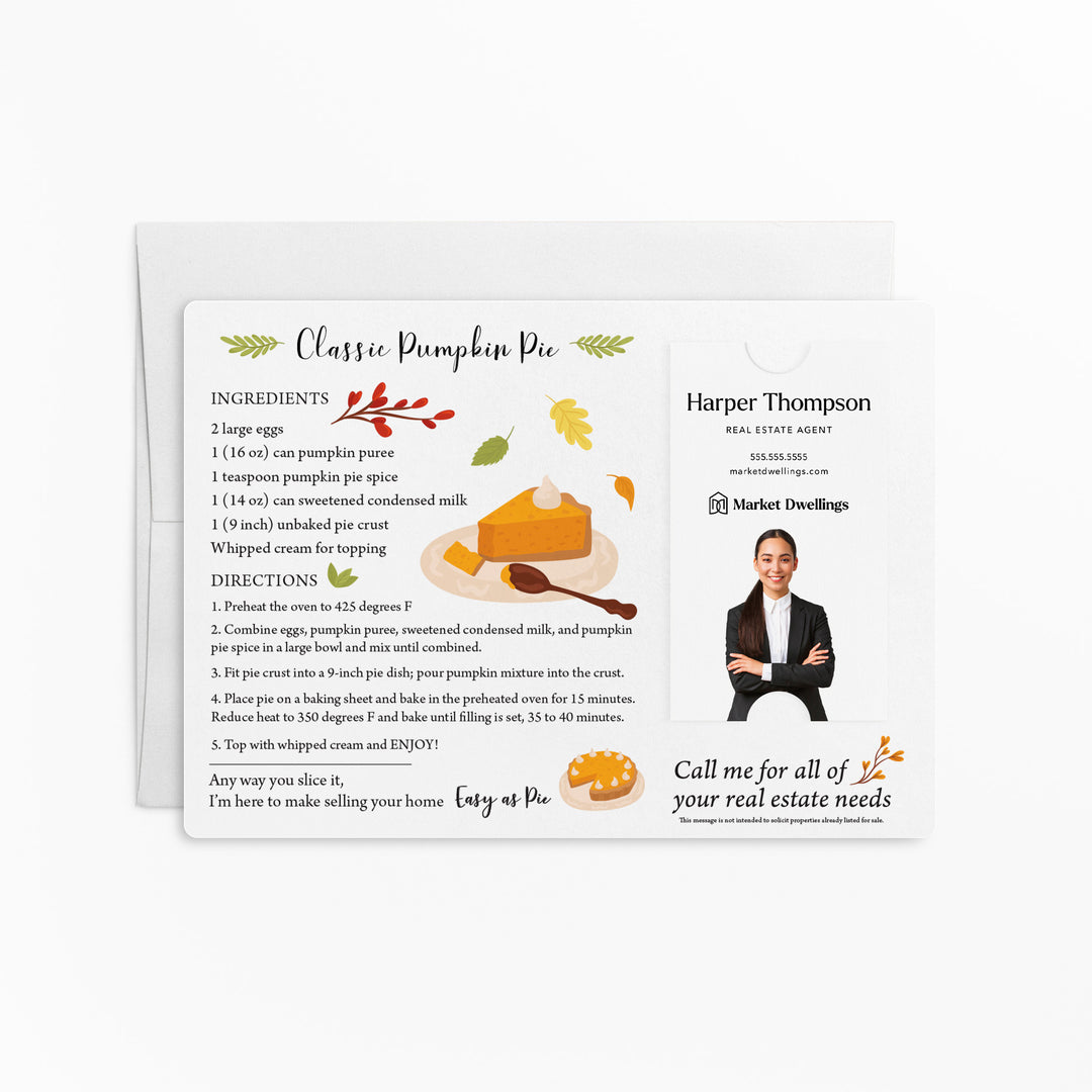 Vertical | SET of Recipe Cards | Classic Pumpkin Pie Recipe Card | Real Estate Agent Marketing | Fall | Mailable| Pop By Gift | M37-M005