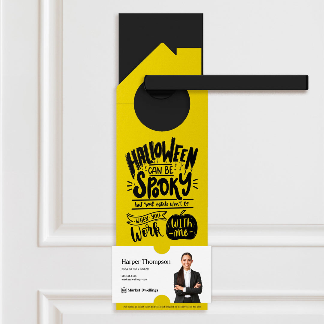 As a real estate professional, you know the importance of nurturing client relationships and standing out in a competitive market. That's why our Halloween Can Be Spooky Real Estate Door Hangers are the perfect addition to your marketing toolkit. These attention-grabbing door hangers not only showcase your brand and contact information, but they also offer a fun and festive twist that will make your clients remember you long after the trick-or-treating is over. With a slot for your business card, these door hangers are a practical and professional way to connect with potential clients in your community. Don't miss out on the opportunity to grow your business and stand out from the crowd this Halloween season. Order our Halloween Can Be Spooky Real Estate Door Hangers today!