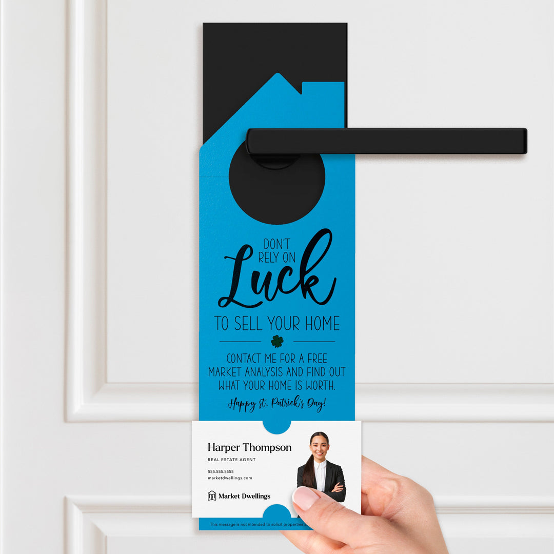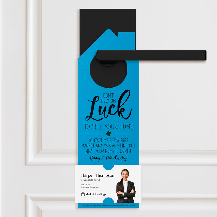 Capture the attention of potential buyers and sellers with our Don't Rely On Luck To Sell Your Home St. Patrick's Day Door Hangers. As a real estate agent, you know the importance of standing out in a crowded market. Our door hangers not only add a festive touch to any home, but they also serve as a powerful tool for growing your business and nurturing client relationships. With a slot to hold your business card, you can make a lasting impression on potential clients and showcase your professionalism. Don't leave your success to chance, invest in our SP3-DH002 door hangers today.