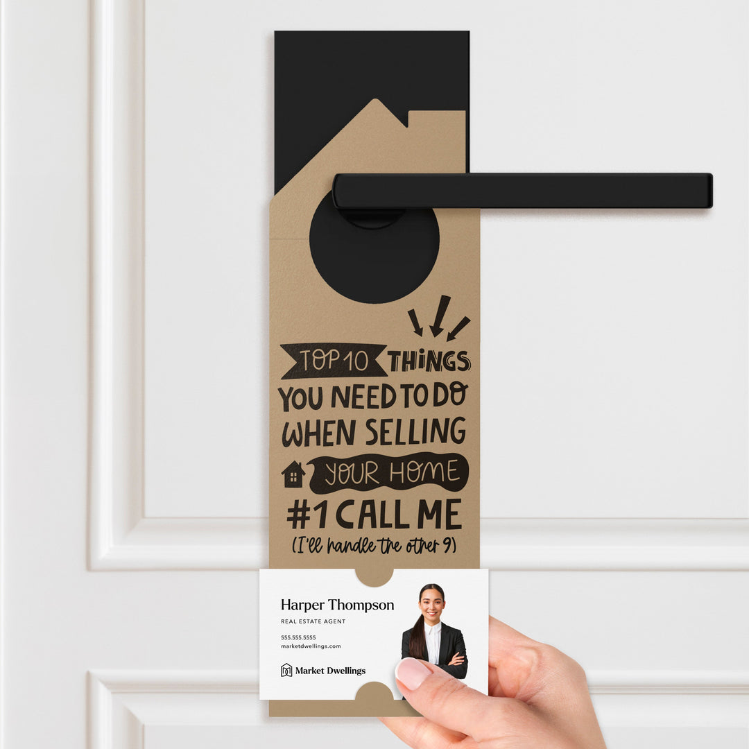 Attention all real estate agents! Are you looking for a powerful tool to boost your business and strengthen your client relationships? Look no further than our Top 10 Things You Need To Do When Selling Your Home door hangers. These professional and thoughtfully designed hangers are the perfect way to showcase your expertise and provide valuable information to potential clients. With slots for your business card, you'll be able to leave a lasting impression and stay top-of-mind. Take your marketing game to the next level and order your 98-DH002 door hangers today!