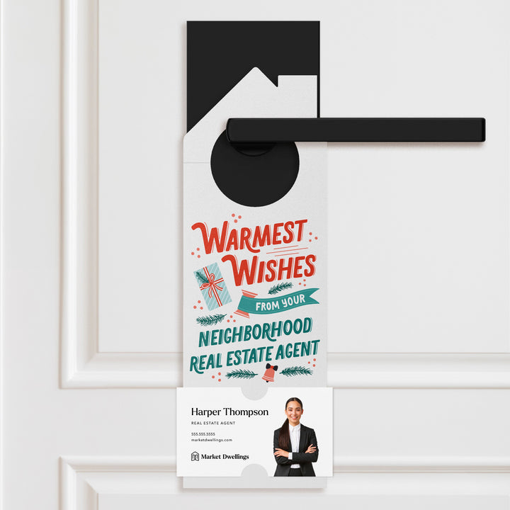Welcome the holiday season with a thoughtful and professional touch with our Warmest Wishes Christmas Winter Door Hangers designed specifically for real estate agents like you. These door hangers are more than just a festive decoration, they are a powerful marketing tool that will help you grow your business and nurture client relationships. With slots to hold your business cards, these door hangers are perfect for promoting your services while spreading holiday cheer. Show your clients that you care with our Warmest Wishes Christmas Winter Door Hangers. Order yours today!