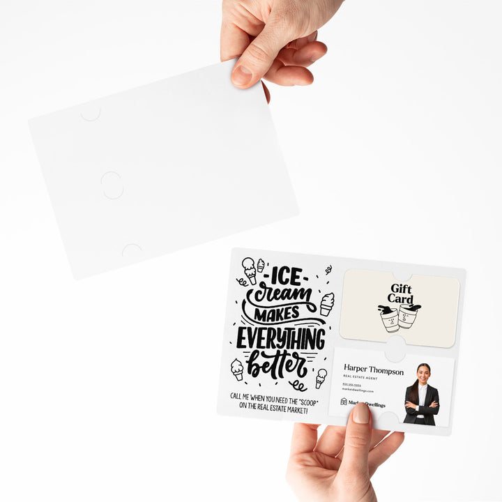 SET of Ice Cream Gift Card and Business Card Holder for Real Estate Agents | Greeting Card with Envelope | Pop By Gift | M7-M008