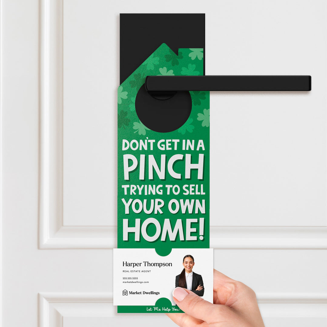 With St. Patrick's Day Door Hangers, real estate agents can easily show appreciation for their clients while also promoting their brand. These door hangers are a unique and eye-catching way to stand out in the market and increase visibility. With the product's SKU 166-DH002-AB, agents can easily incorporate their own branding and messaging, making it a personalized and effective marketing tool. Don't Get In A Pinch Trying To Sell Your Own Home! is the perfect product for real estate agents looking to thank their clients, build trust, and grow their business.