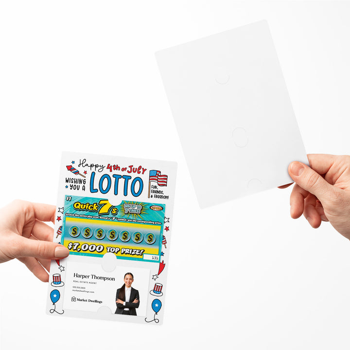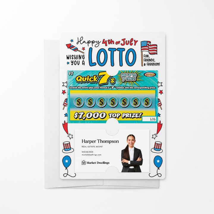 - Patriotic Design: Features a bold and festive 4th of July theme with slots for a scratch-off ticket and a business card, creating a personal and memorable touch.