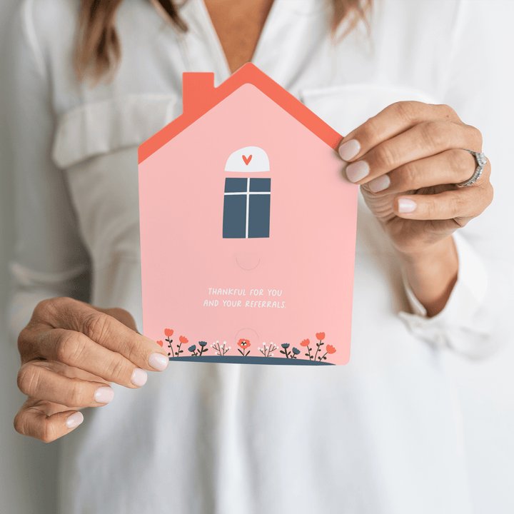 Real Estate Agents and Mortgage Lenders: Send your clients a beautiful card on the anniversary of their home purchase! These cards have a pre-written message inside. Cards also have slots for you to slide your business card in. This item comes with white envelopes.