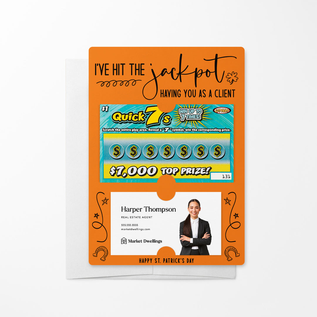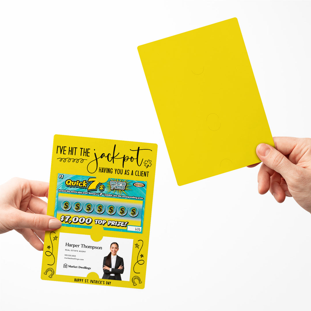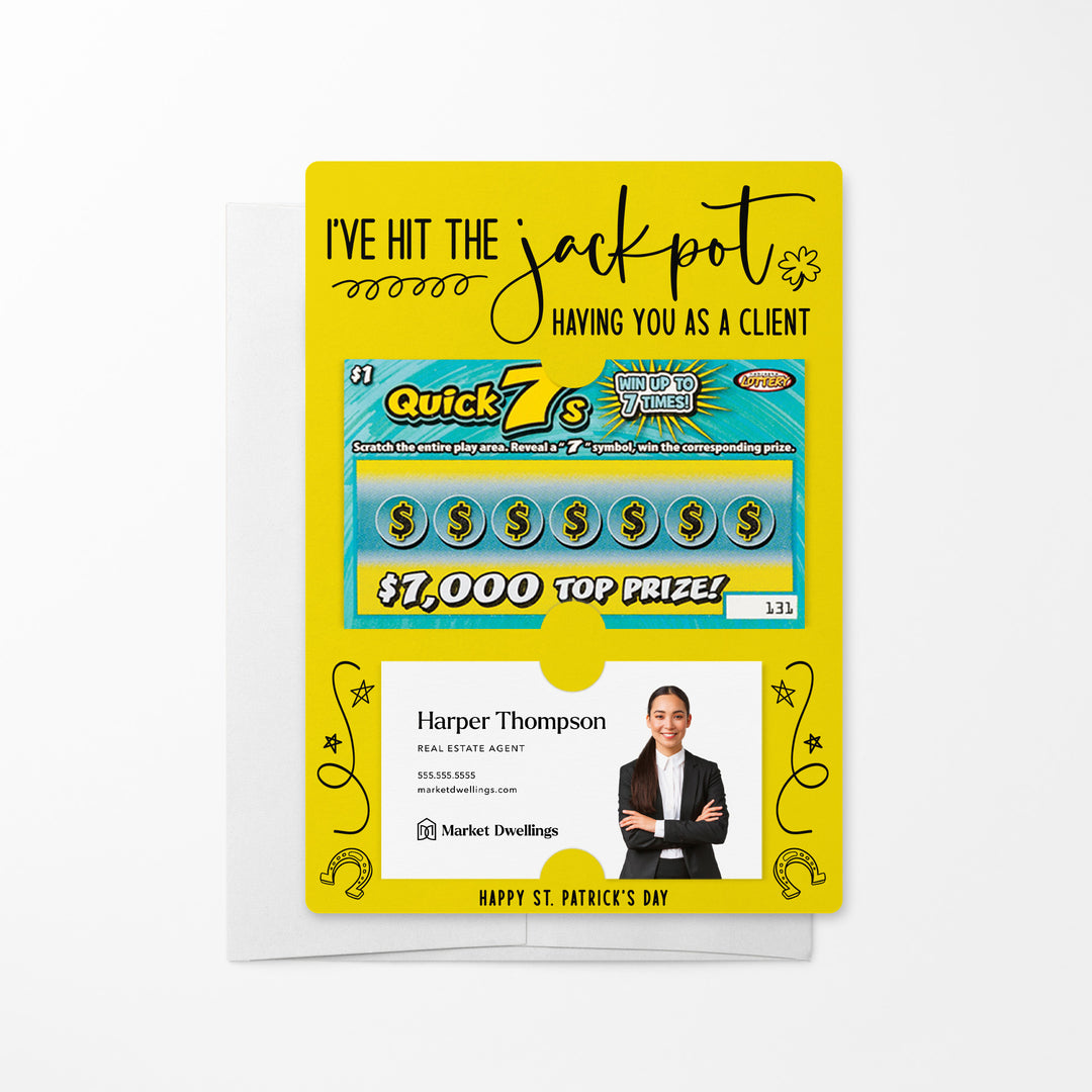 Celebrate your clients this St. Patrick's Day with our I've Hit the Jackpot Having You as a Client Mailers w/ Envelopes! These festive and engaging mailers are a creative way to express your appreciation for their business and referrals. Featuring slots for a scratch-off ticket and your business card, these mailers combine fun, luck, and professionalism. Each mailer comes complete with an easy peel-and-stick white envelope, ensuring a seamless mailing experience.