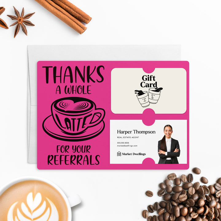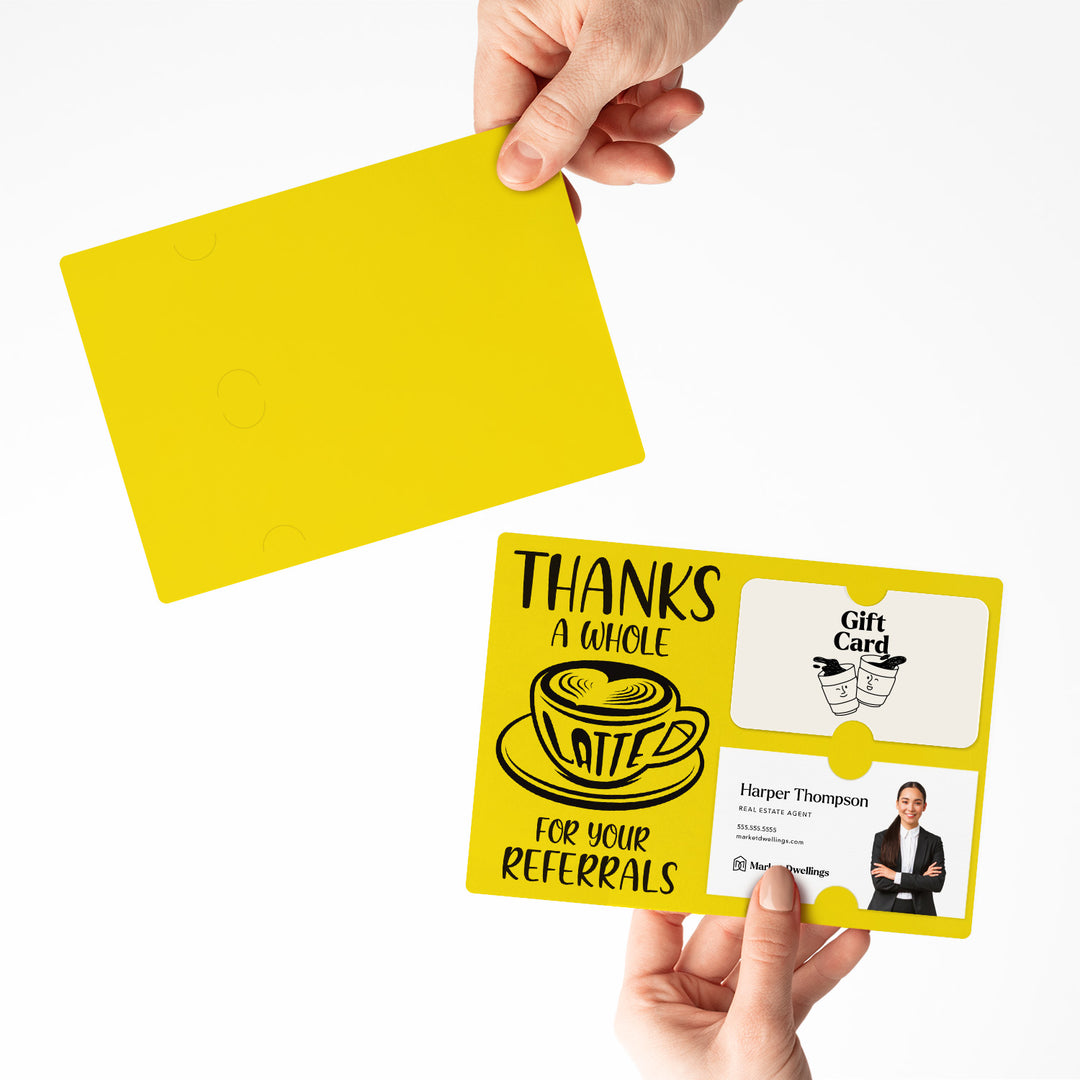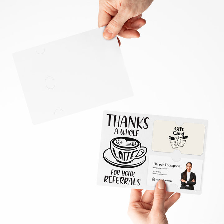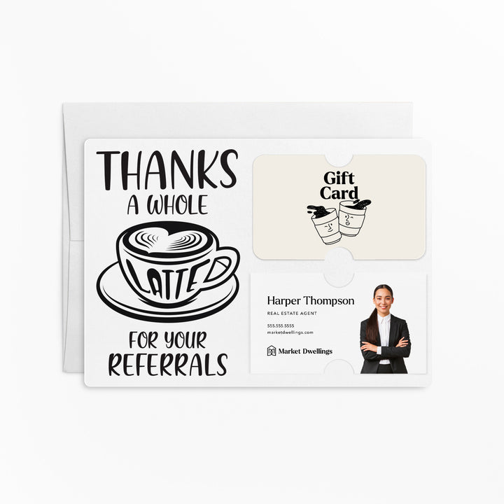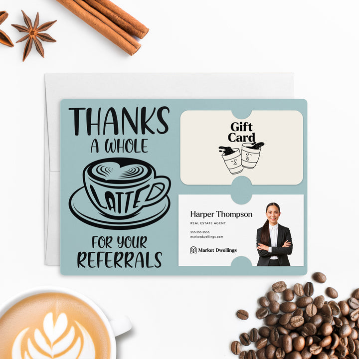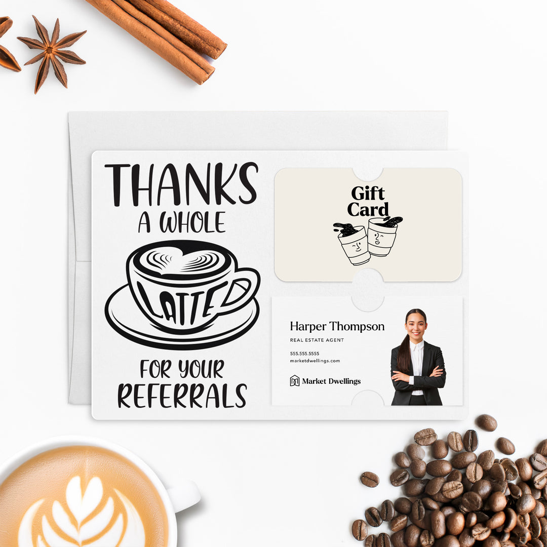 SET of Thanks A Latte Gift Card and Business Card Holder | Greeting Card with Envelope | Client Gift | Promotional Business Cards | Referral