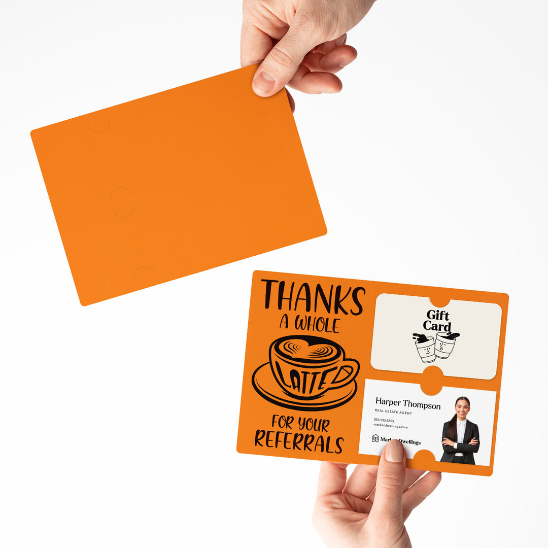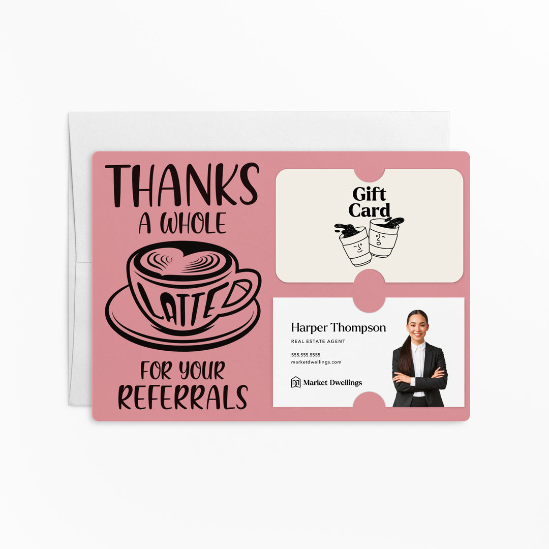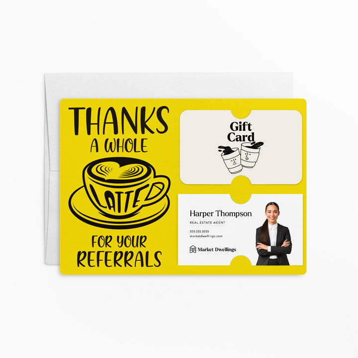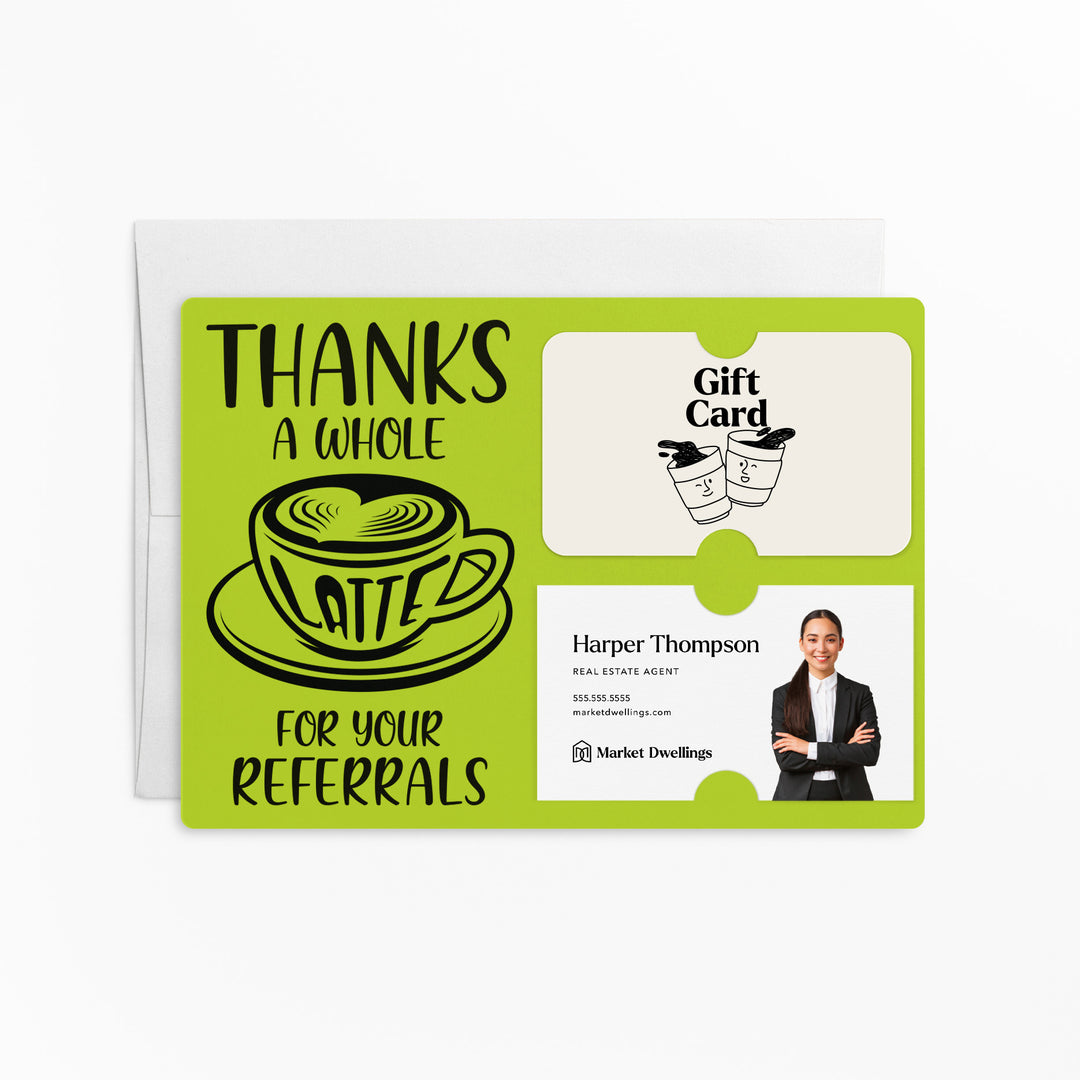 SET of Thanks A Latte Gift Card and Business Card Holder | Greeting Card with Envelope | Client Gift | Promotional Business Cards | Referral