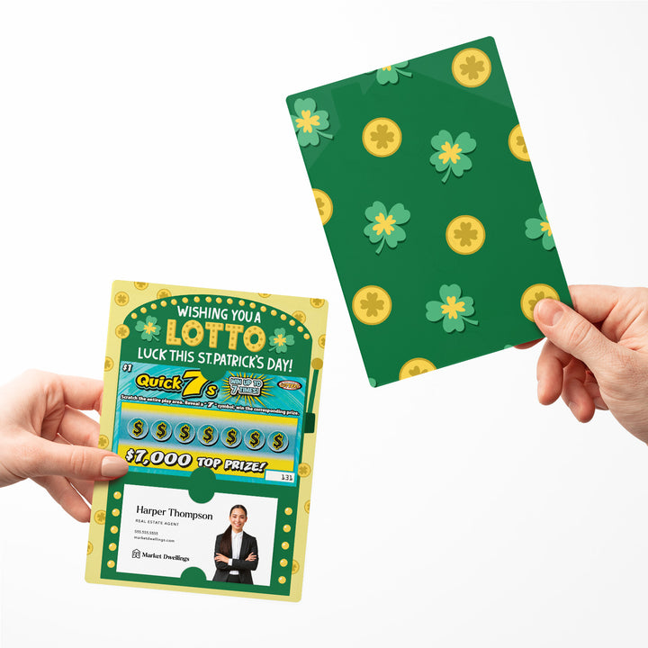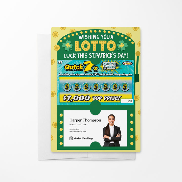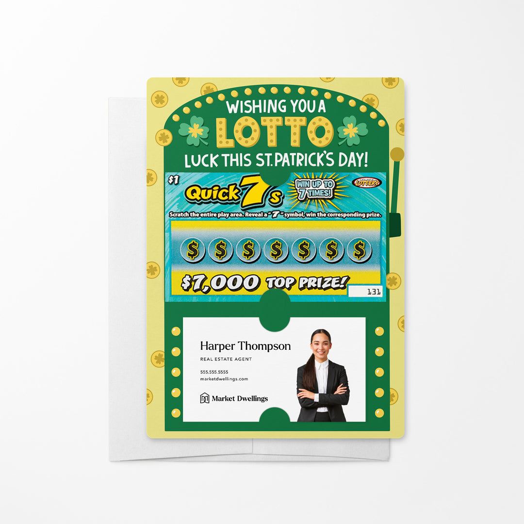 St. Patrick's Day mailers, customizable scratch-off mailers, client appreciation mailers, real estate marketing tools, professional festive mailers, personalized lotto mailers, branded scratch-off mailers, real estate lotto mailers, realtor promotional materials, cheerful client gifts, business card mailers, scratch ticket mailers, creative festive outreach, client engagement tools, real estate branding materials.