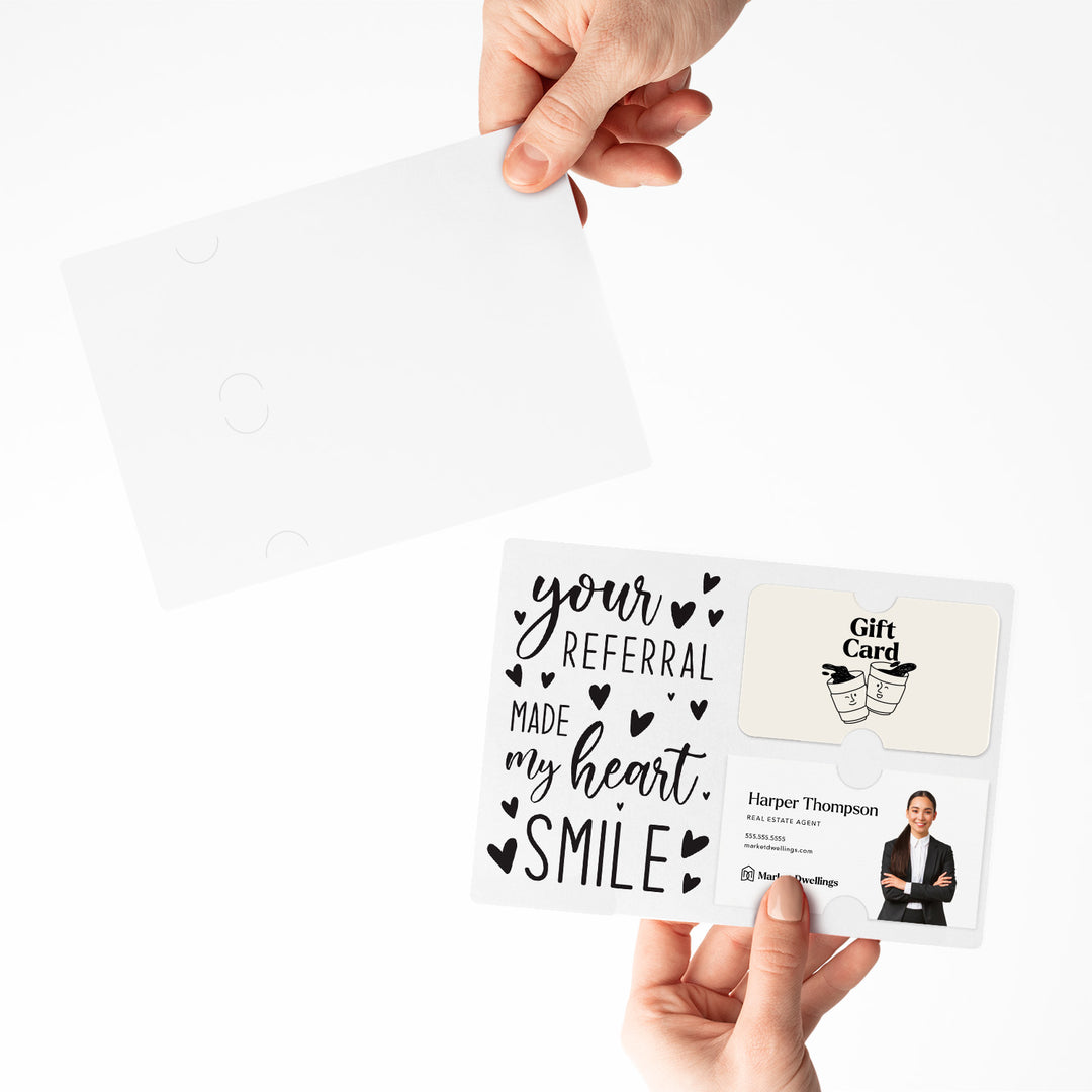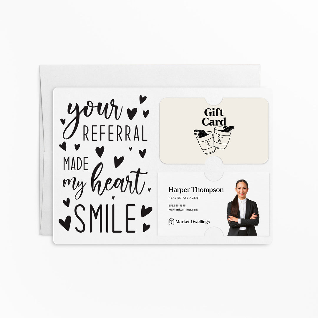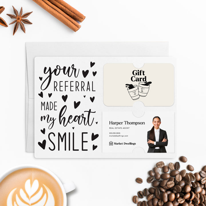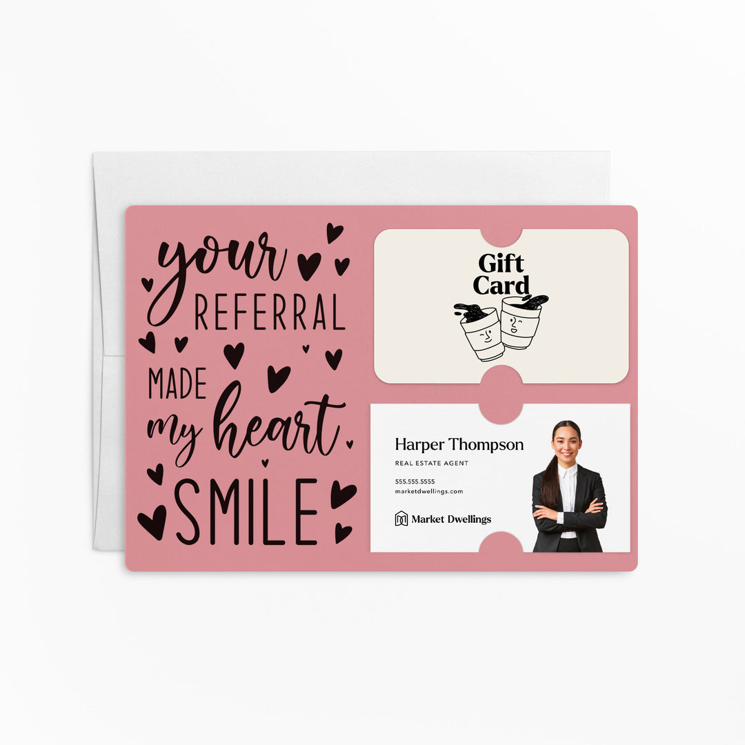 SET of Your Referral Made My Heart Smile Gift Card & Business Card Holder w/Envelope | Real Estate Mortgage | Coffee Card | M2-M008