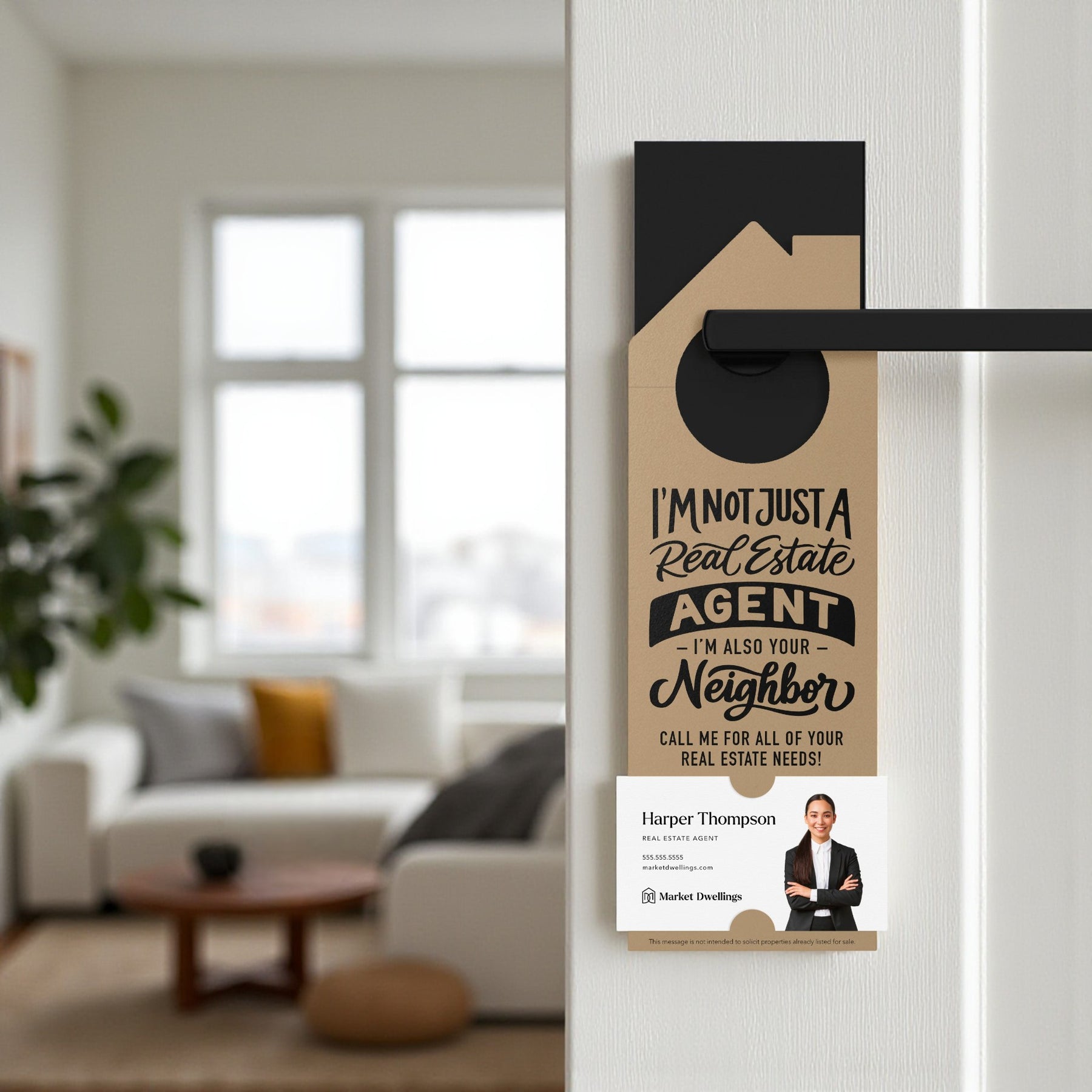 As a real estate agent, you understand the importance of building strong relationships with your clients. That's why our 'I'm not just a Real Estate Agent, I'm also your Neighbor' door hanger is the perfect marketing tool for you. With its thoughtful and professional design, it showcases your commitment to not only helping clients find their dream home, but also being a neighbor and friend. The door hanger also features a slot to hold your business card, making it easy for potential clients to reach out. Let this door hanger be a reflection of your warm and personable approach to real estate, and watch as it helps you grow your business and nurture lasting client relationships.