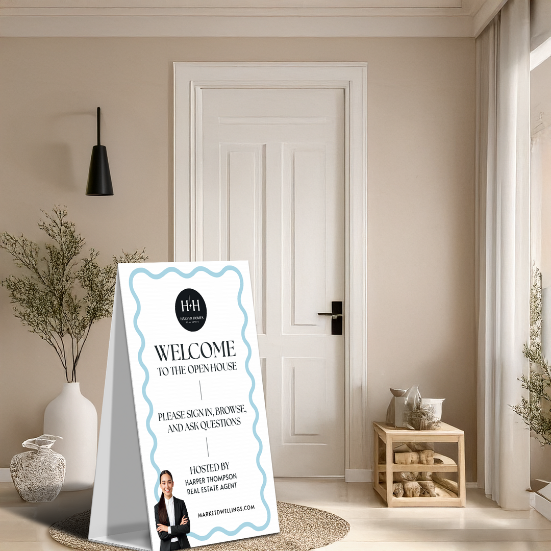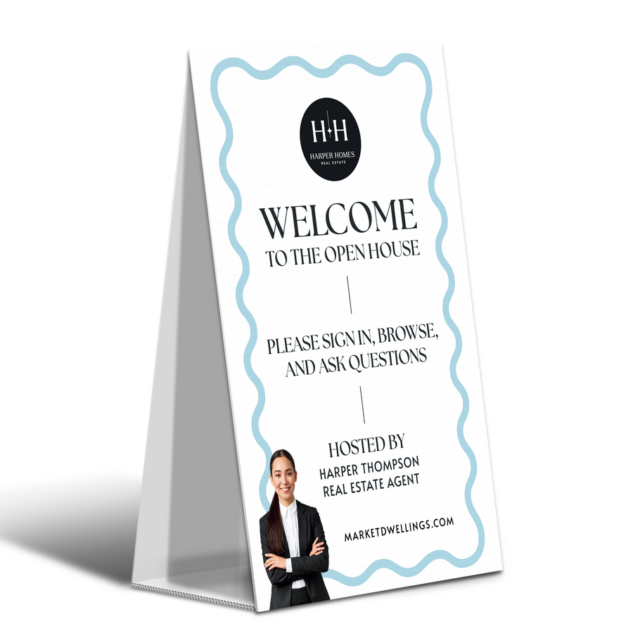 Stand out at every open house with our durable Corrugated A-Frame Sign—a lightweight, portable solution designed to grab attention from every angle. Perfect for real estate agents, these signs make it easy to direct traffic, showcase your listings, and create a professional first impression that clients will remember.