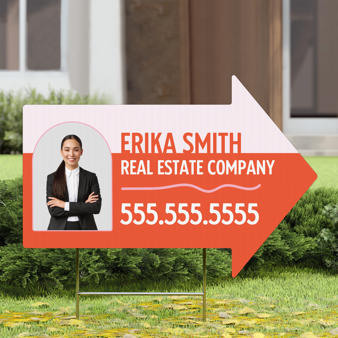Customizable | Directional Arrow Real Estate Yard Sign Directional Sign Market Dwellings TOMATO RED