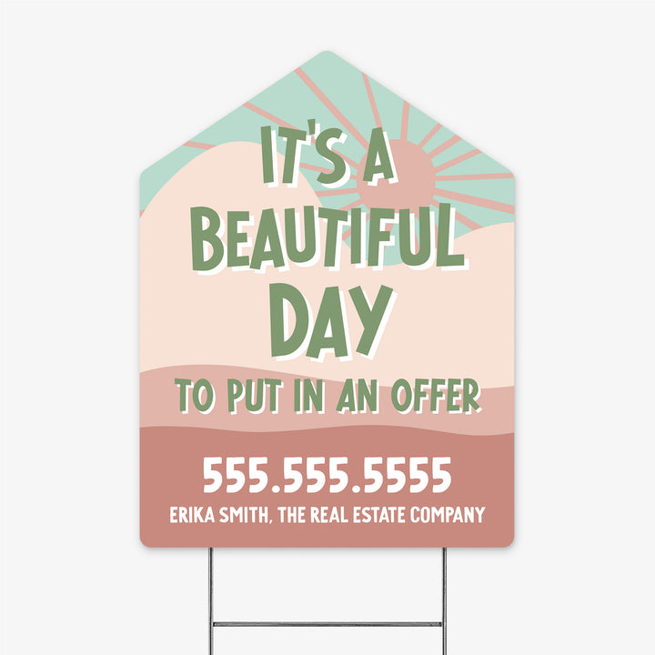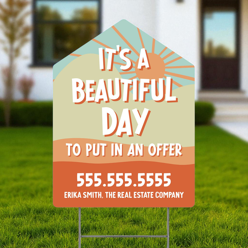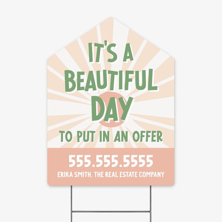 Customizable | It's a beautiful day to put in an offer | Real Estate Yard Sign Yard Sign Market Dwellings