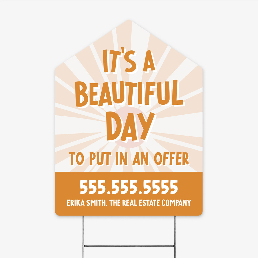 Customizable | It's a beautiful day to put in an offer | Real Estate Yard Sign Yard Sign Market Dwellings TANGERINE
