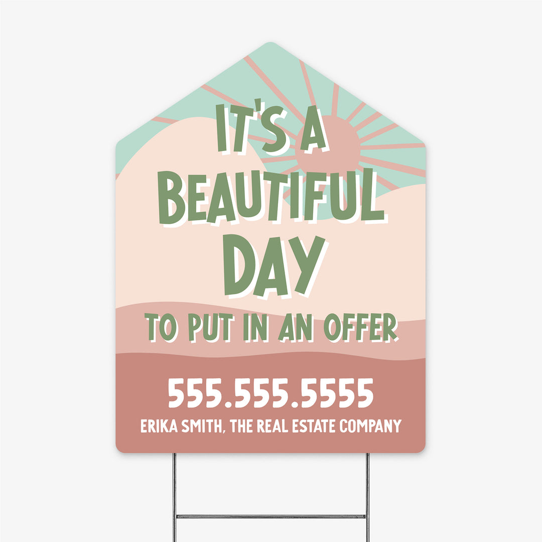 Customizable | It's a beautiful day to put in an offer | Real Estate Yard Sign Yard Sign Market Dwellings BLUSH