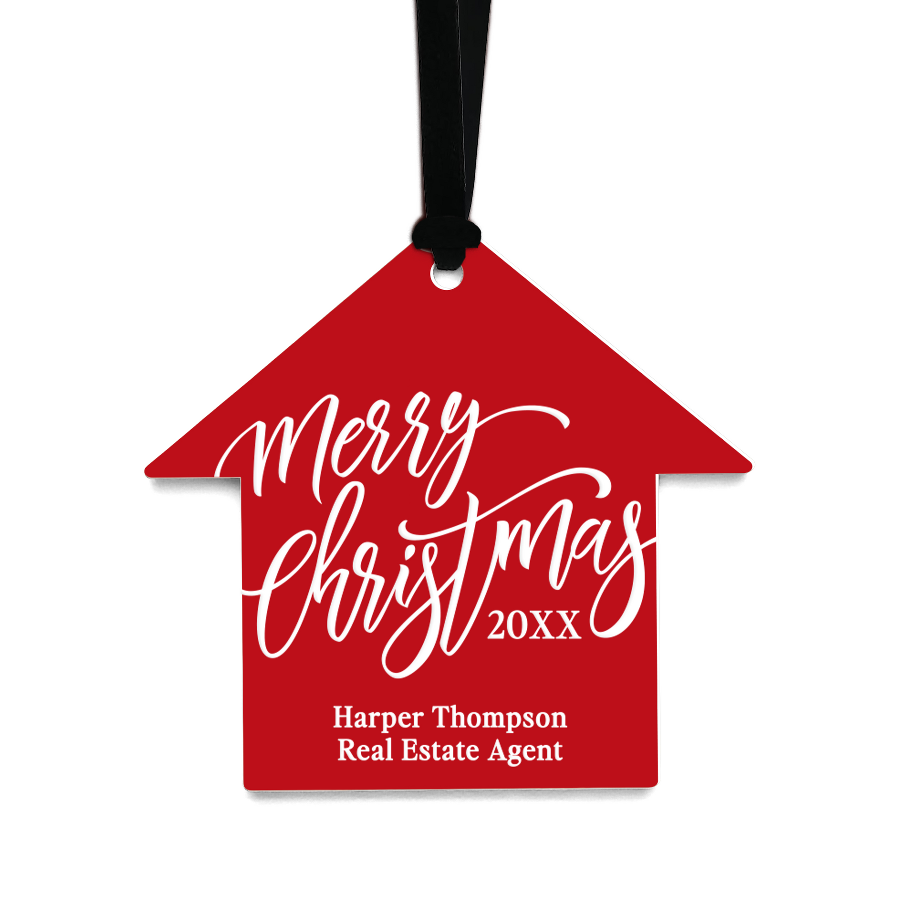real estate client gift, house ornament, acrylic christmas ornament, branded holiday gift, realtor holiday marketing, client appreciation