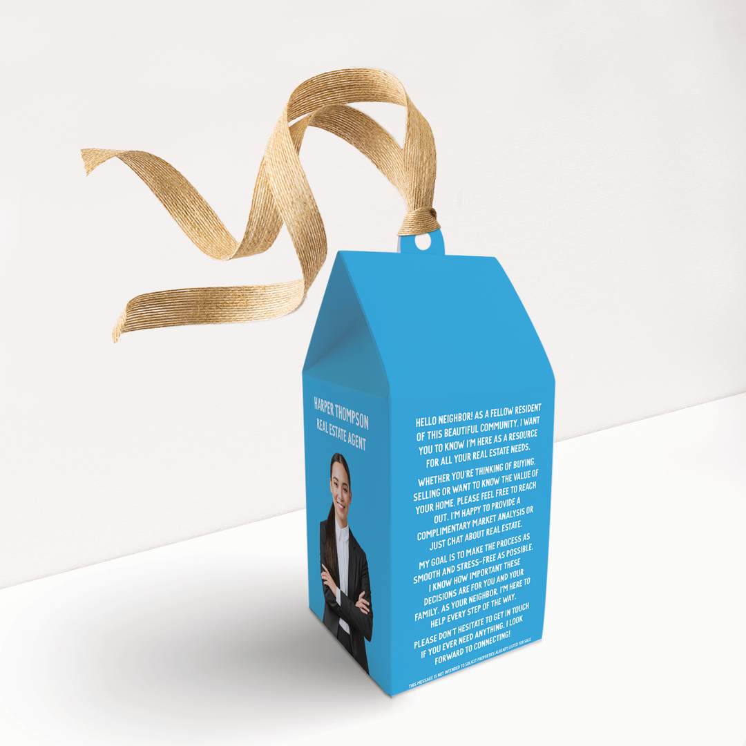 Real Estate Agents: Looking for a delightful and memorable way to engage with your neighborhood? Dive into our eye-catching house-shaped Pop By Boxes! These customizable hanging treat boxes are a surefire way to grab attention and leave a lasting impression. Personalize them to fit your brand and fill them up with treats of your choice. Every homeowner will appreciate the gesture, knowing exactly who to call when they're ready to jump into the real estate market. Make your mark and sweeten the deal with our Pop By Boxes!