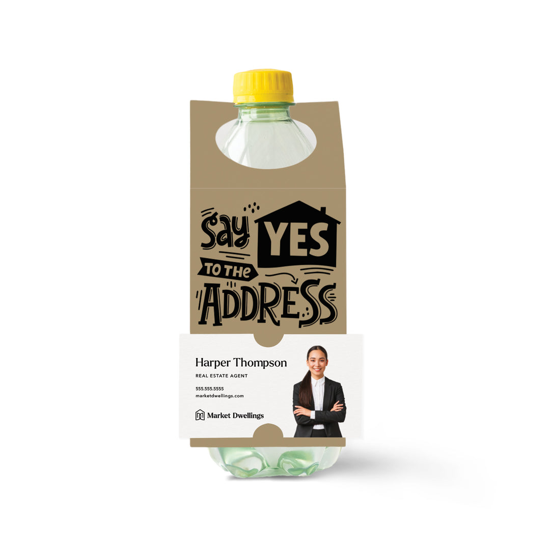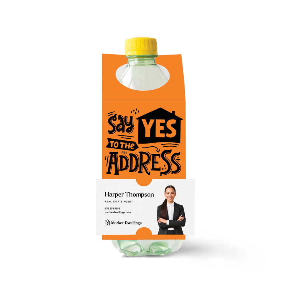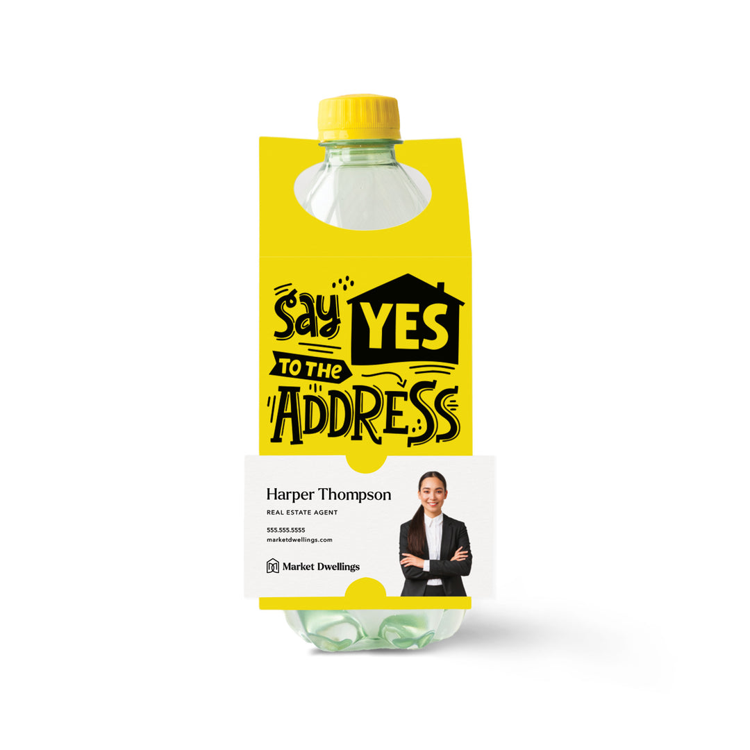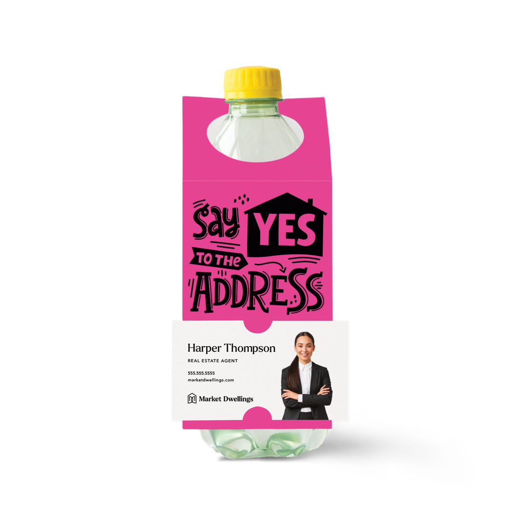 Welcome potential buyers with our Say Yes To the Address Open House Bottle Hang Tags! These fun and professional tags are the perfect addition to water bottles or other refreshments, helping you create a memorable and welcoming experience at your open house. Featuring a stylish design and a slot for your business card, these tags combine thoughtful details with effective branding.
