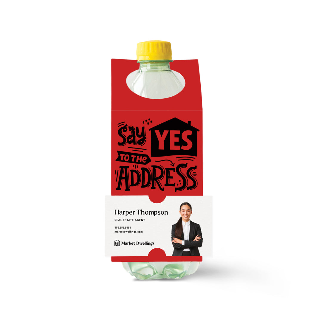 These Say Yes To the Address Open House Bottle Hang Tags are a creative and effective way to enhance your open house events. Attach them to water bottles or refreshments as a thoughtful gesture that keeps your brand top-of-mind while making buyers feel welcomed. The playful design ensures your professionalism stands out and helps potential buyers remember your event.