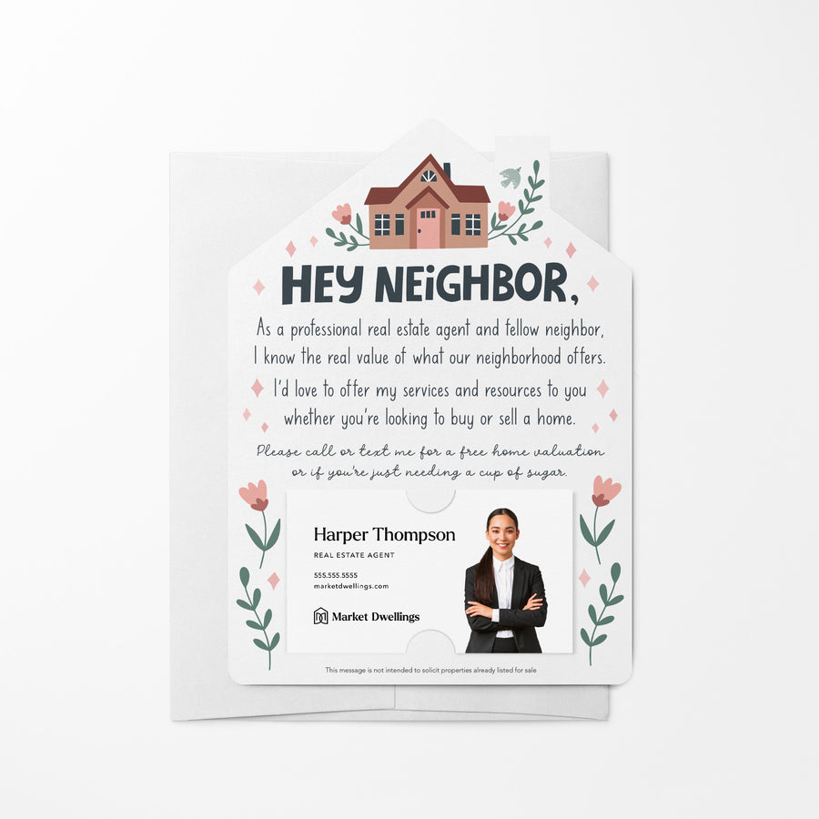 SET of Hey Neighbor Real Estate Mailers w/ Envelopes | Insert Your Business Card | Real Estate Referral Client Cards | M33-M001