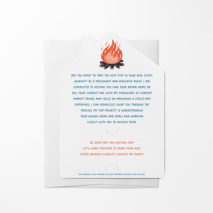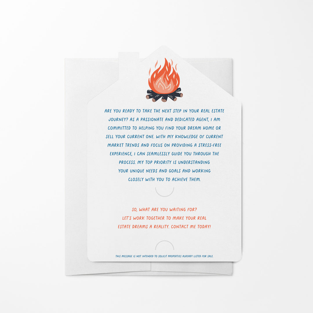 Send these campfire mailers to homes in your target market. You can even slide your business card in the slots provided, so the homeowner can call you when they need a real estate agent! White envelopes included.