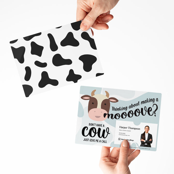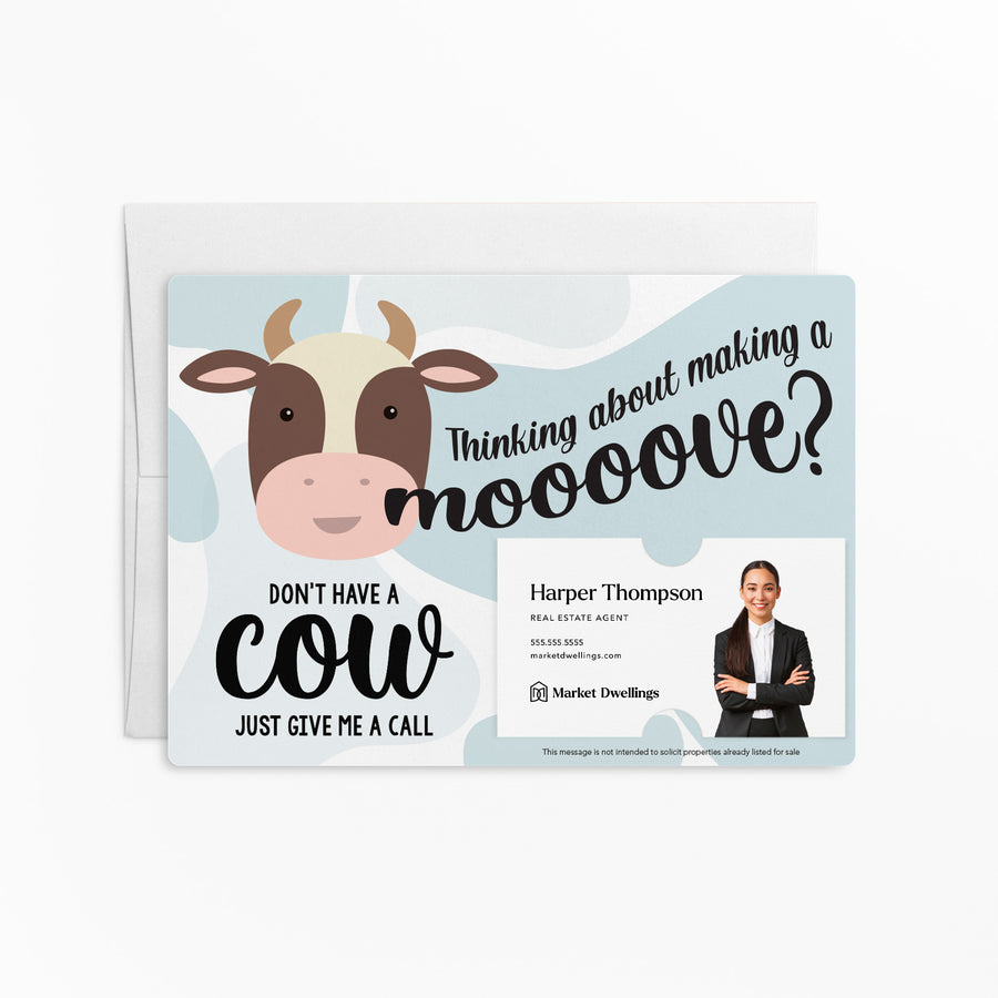 SET of Thinking of Making a Moooove Mailer with Envelope | Double Sided Cow Mailer | Creative Real Estate Marketing Mailer Moo Mailer | M1-M003